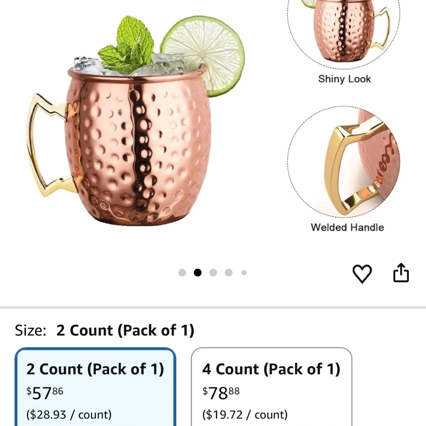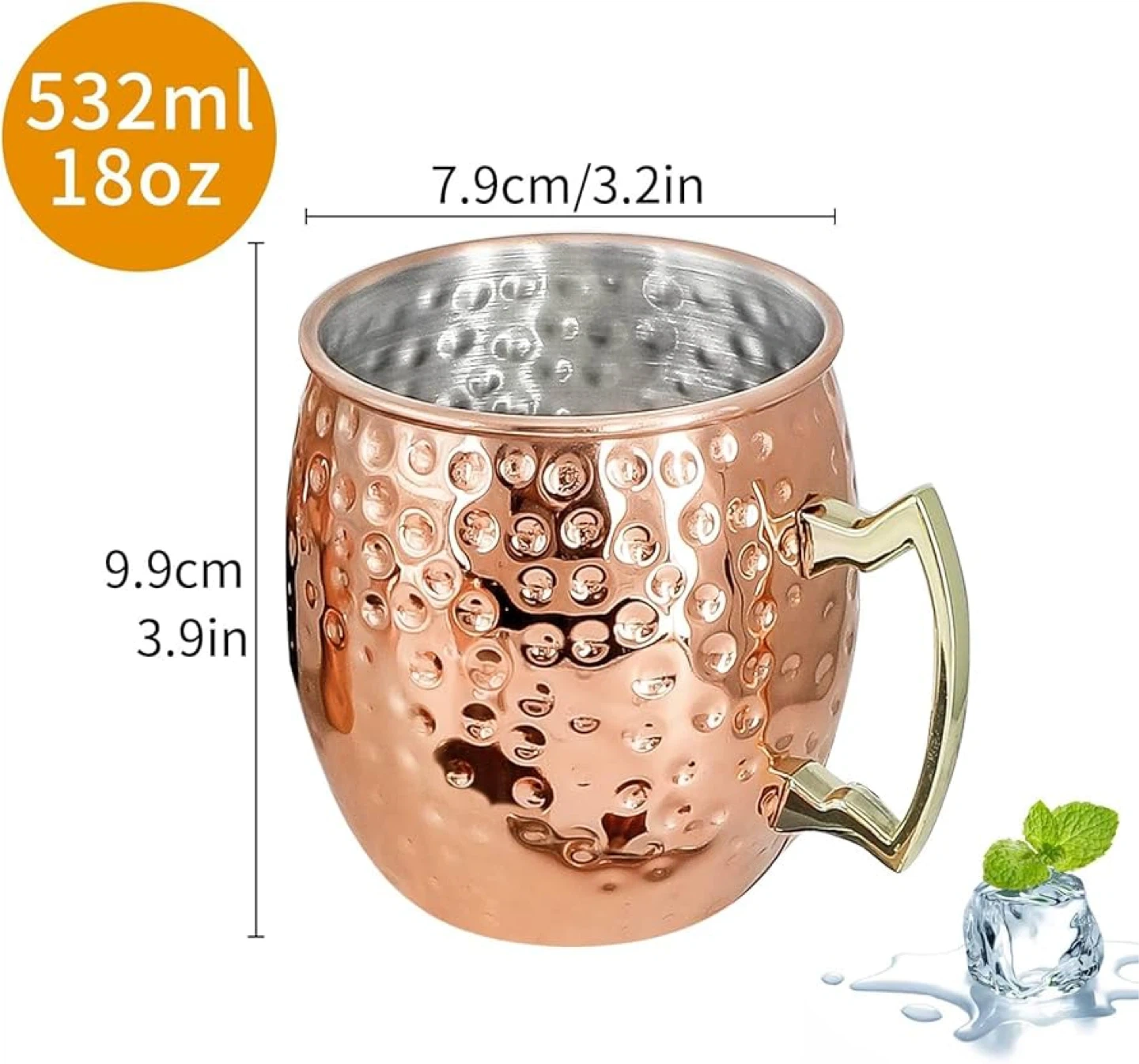 ✨ These copper Moscow Mule mugs hold 18oz (532ml) and are 3.9 inches tall.