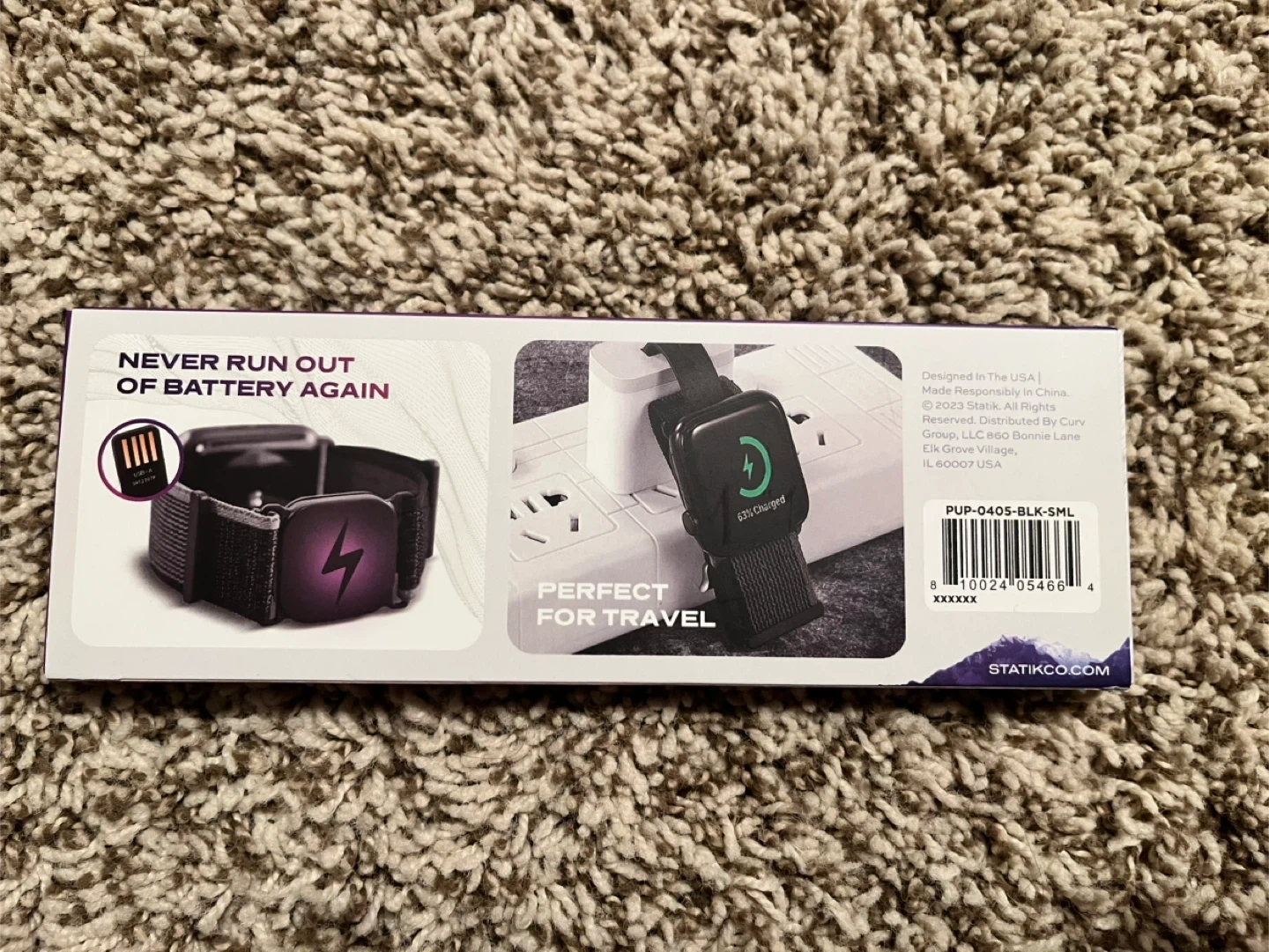 This is a STATIK TURBOBAND, a 2-in-1 strap and watch charger. It's made with breathable nylon strap and premium materials. The strap has adjustable buckles for a comfortable fit.
