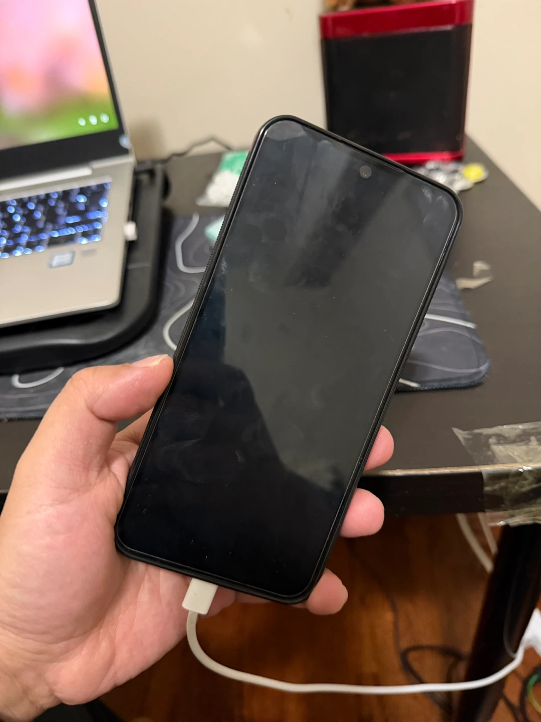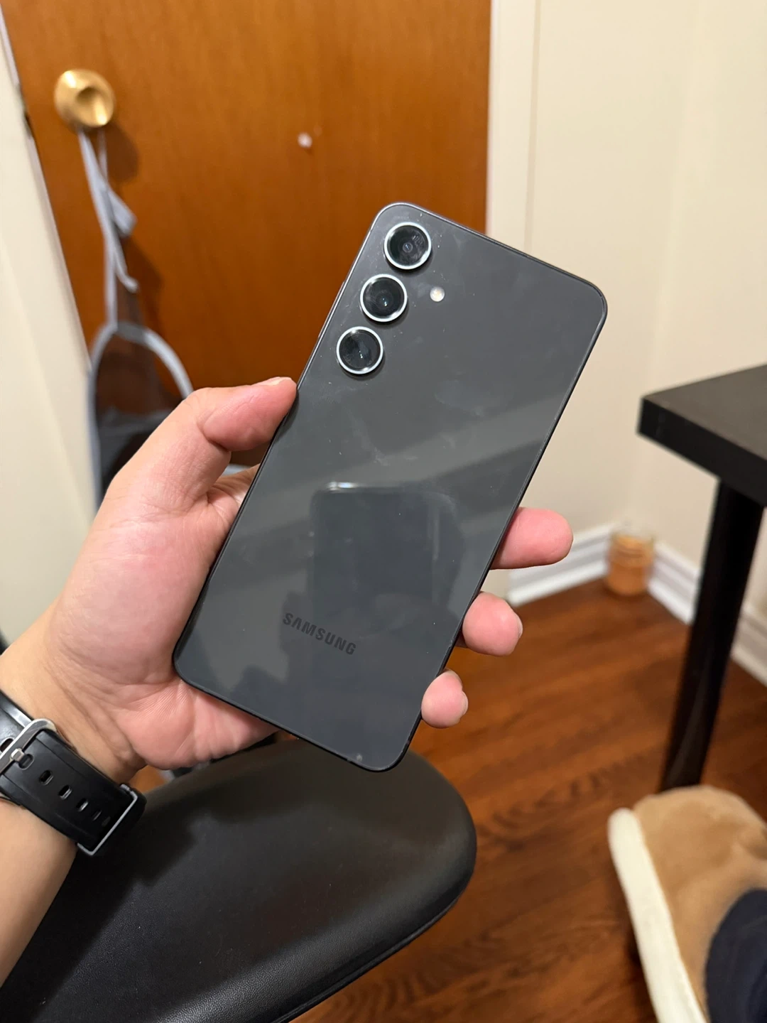 Selling a Samsung Galaxy S24fe in black. It's in great condition and ready for a new owner! It comes with a box and a brand new earphone