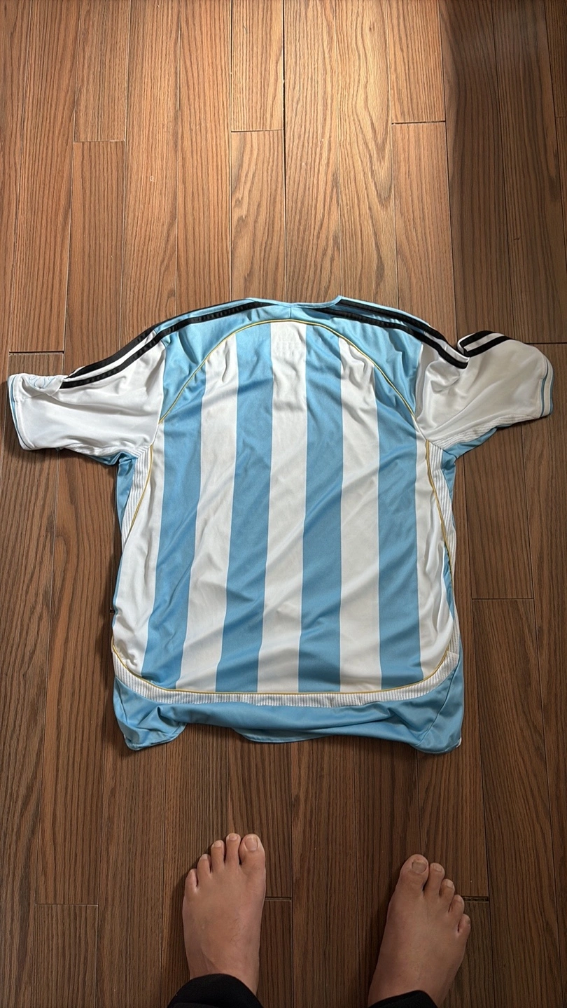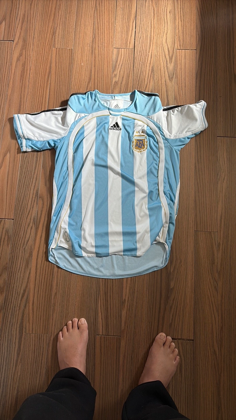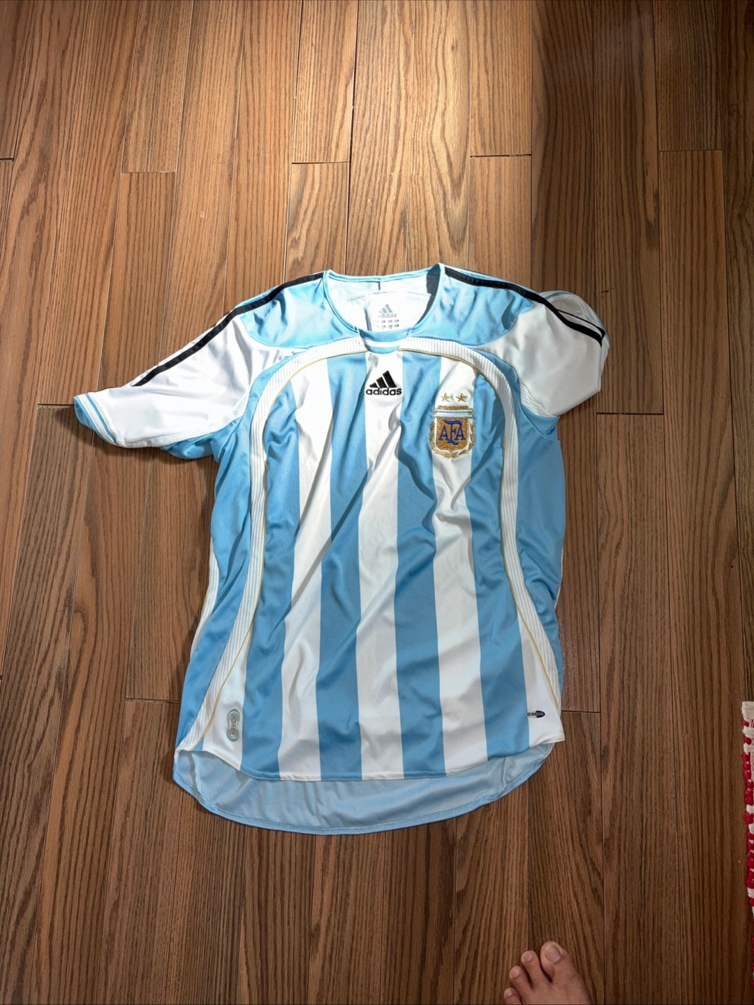 Men's Adidas Argentina national team soccer jersey. Light blue and white vertical stripes. Adidas logo and Argentina crest. Size large.