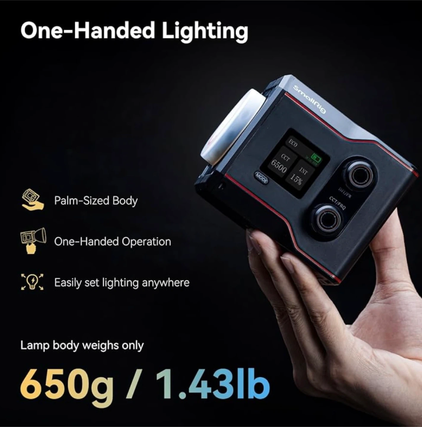 Lightweight & Portable: With dimensions of 115 x 85 x 85mm and a body weight of only 650g, the handheld photography light is very suitable for flat and video content creation in mobile scenarios. All accessories can be placed in an elegant and durable storage bag, and the overall weight is only about 1.5kg. Lightweight storage and portability allow your content creation not to be constrained by the weight of the light!