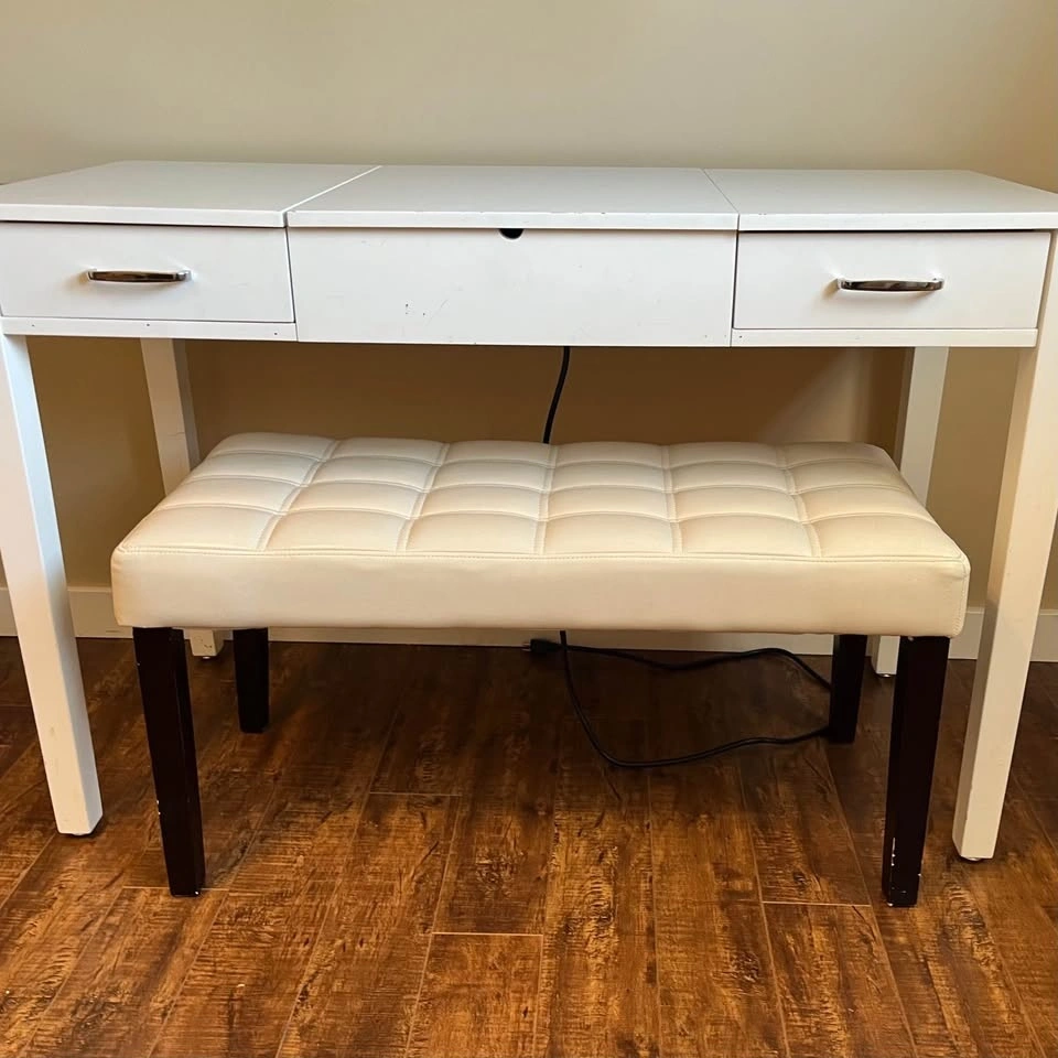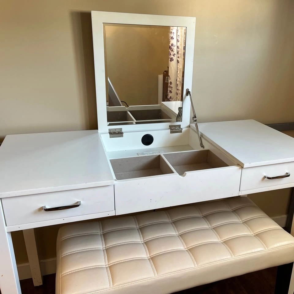 The package also includes a work desk/vanity combo with two drawers and a built-in power supply, plus a comfortable study bench. All from a pet and smoke-free home. All in really good to excellent condition. Cash only. Located in Varsity.