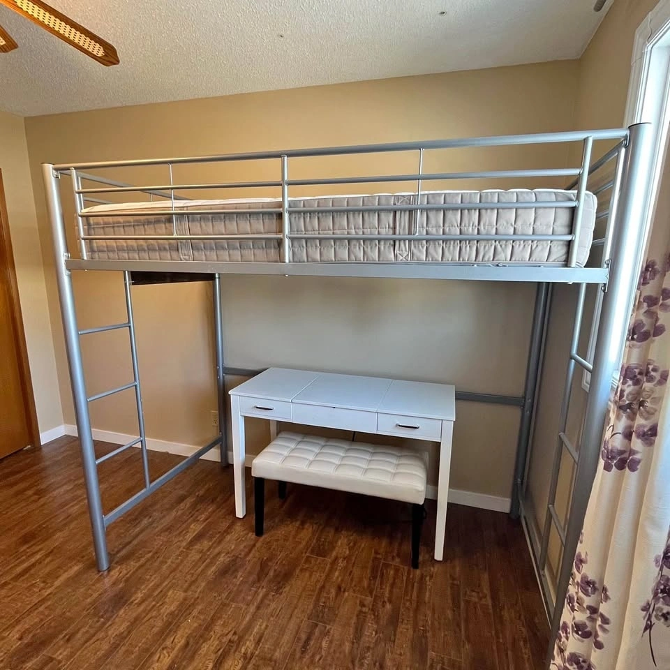 The package also includes a work desk/vanity combo with two drawers and a built-in power supply, plus a comfortable study bench. All from a pet and smoke-free home. All in really good to excellent condition. Cash only. Located in Varsity.