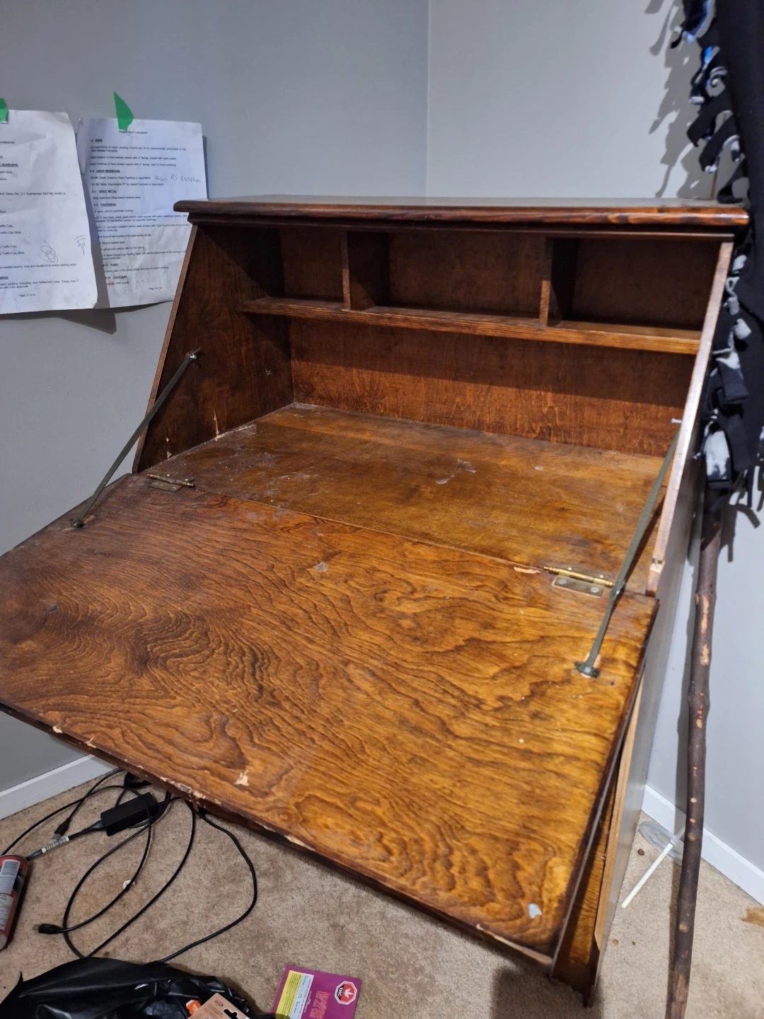 Buy & SellAntique Wooden Secretary DeskAntique Wooden Secretary Desk$112Fold down dresser desk in good shape $100 cash in hand, pick up only . Contact me at 778-879-7400 ConditionGoodWHERE TO MEETCheck LocationView MapSELLERPaulParkdale Gardens100 reviews0 chats·2 favorites·38 viewsSEND CHAT TO SELLERHi Paul! I’m interested in your listing.Hi Paul! I’m interested in your listing.Get the Karrot app to chatSign In to chat