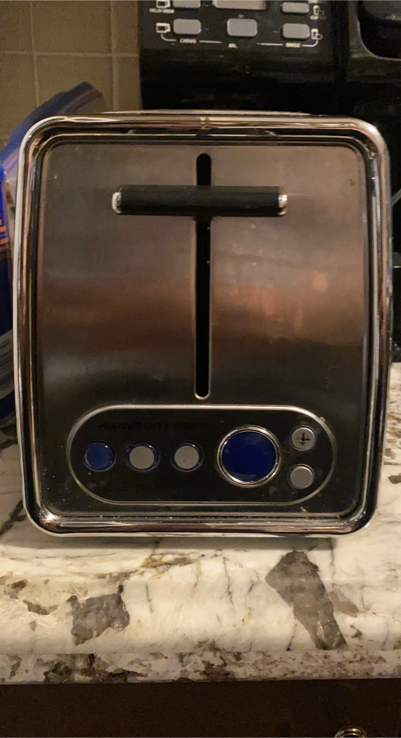 This is a Hamilton Beach 2-slice toaster with a sleek stainless steel finish. It's got multiple browning settings and a cancel button for your convenience! This toaster is perfect for making quick breakfasts or snacks.