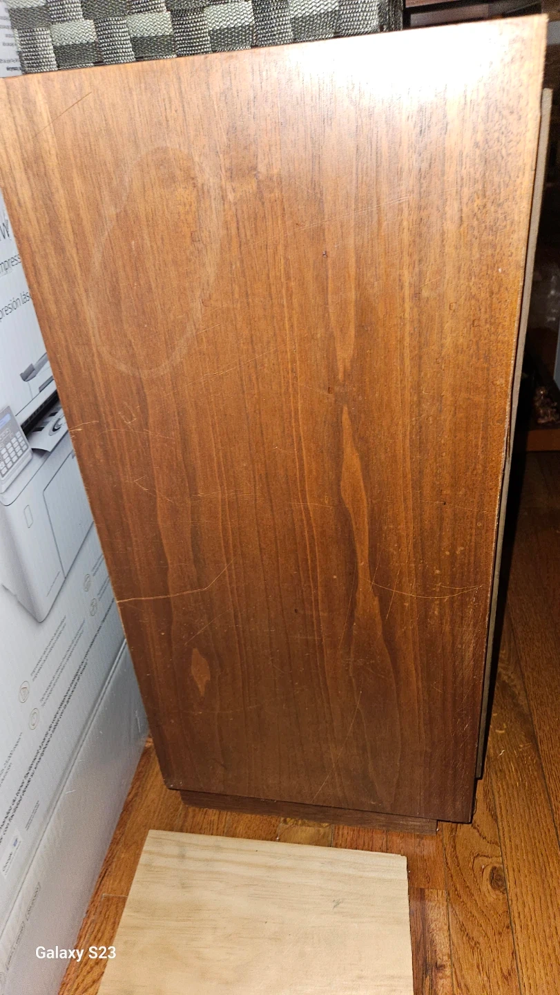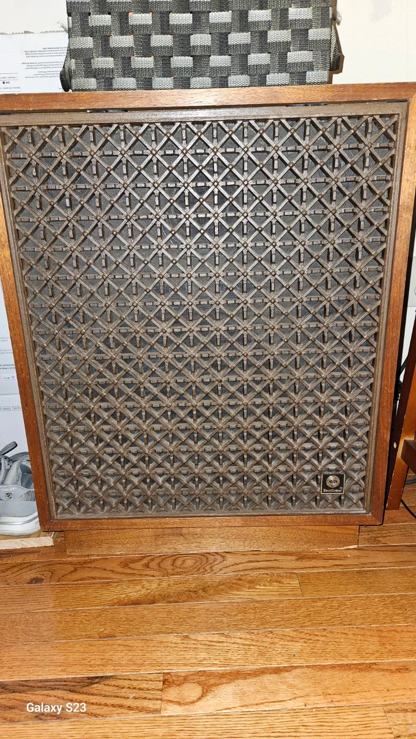 Selling 02 (two) vintage Rectilinear floor speaker ($150 each) It has a wooden cabinet and a patterned front grill. There are some scratches on the side of the cabinet, but overall it's in good condition for its age.