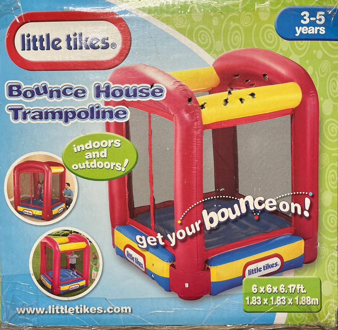 PLEASE COME GET IT…FREE….This is a Little Tikes Bounce House and Trampoline. The inflatable bounce house is red and yellow and features a trampoline inside. It can be used both indoors and outdoors.