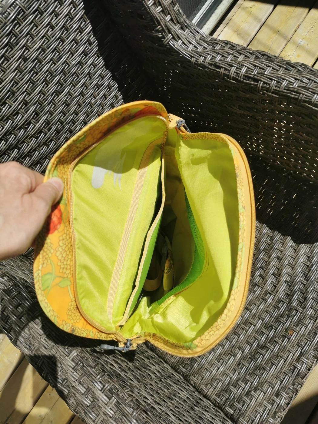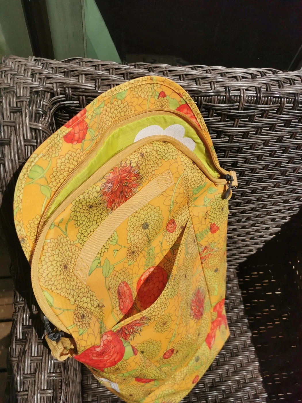 Rain cover in secret zipped compartment (never used)