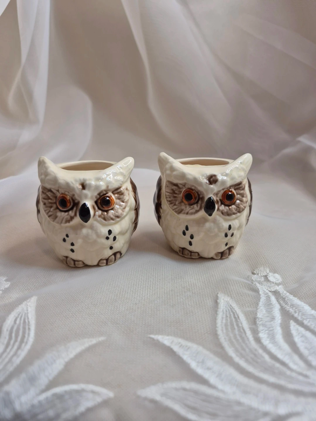 Pair of Vintage Ceramic Owl Toothpick etc. Holders