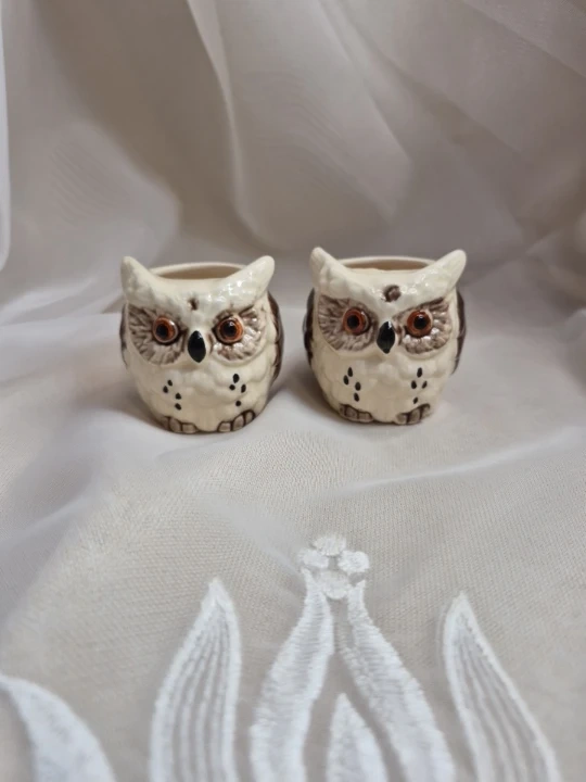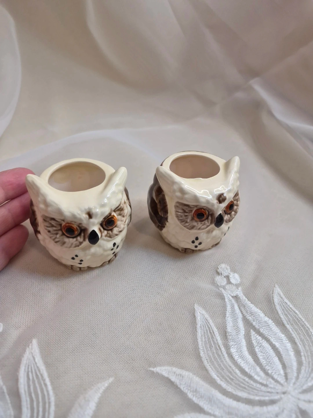 Pair of Vintage Ceramic Owl Toothpick etc. Holders