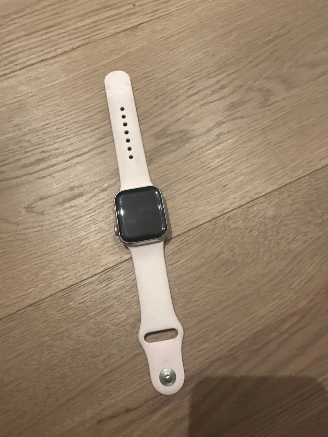 Silver aluminium watch with a pale pink sport band. It's a 45mm model. It's in good working condition. Small scratch on the screen. Open to price changes. I accept e-transfer or cash. Message me for any photos or questions!