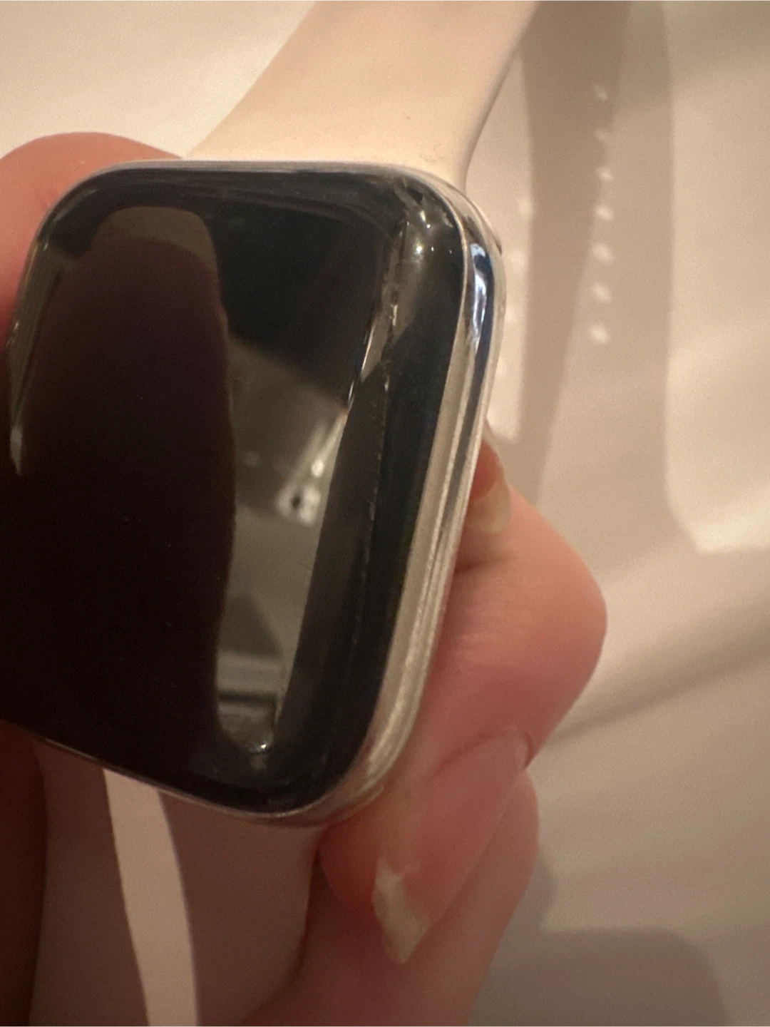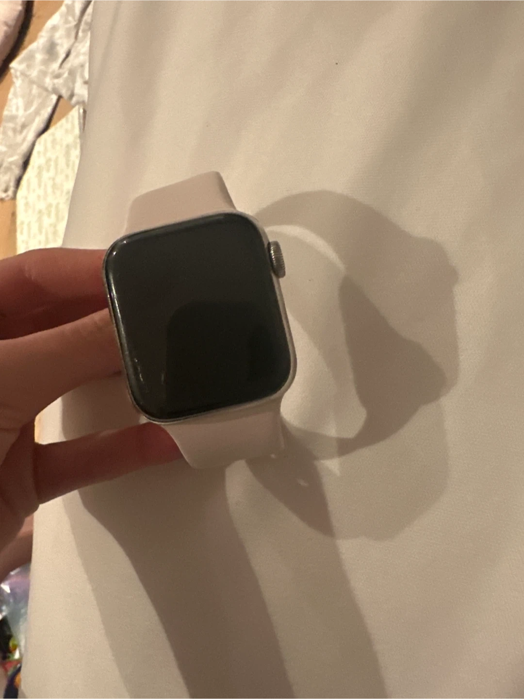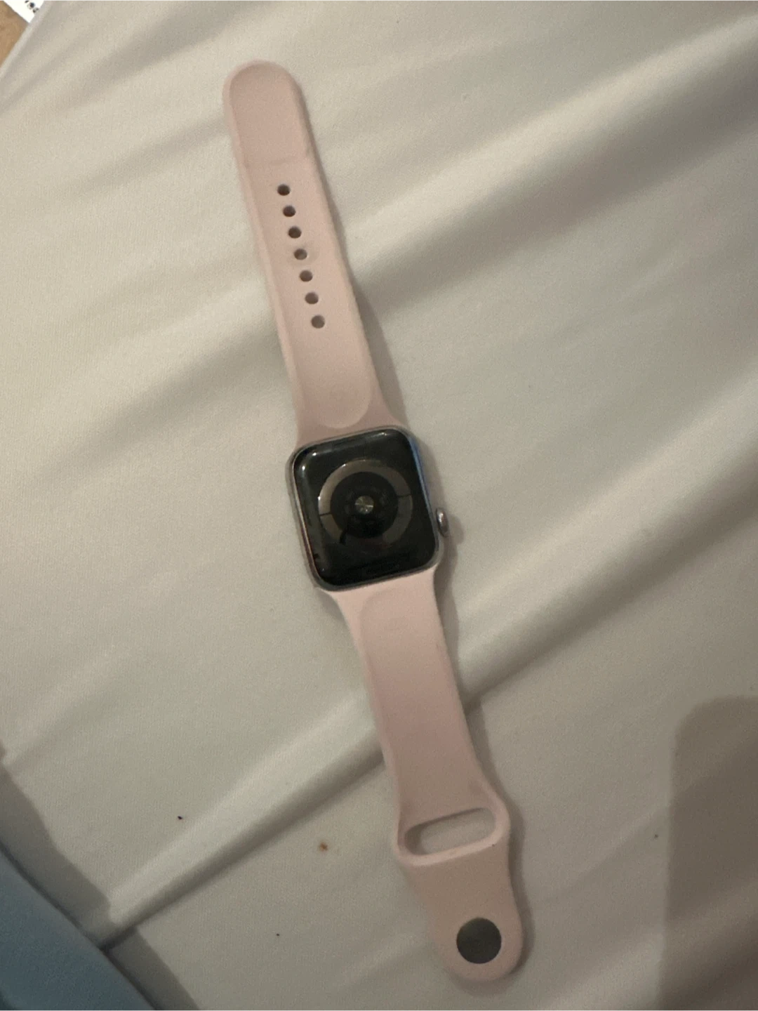 Silver aluminium watch with a pale pink sport band. It's a 45mm model. It's in good working condition. Small scratch on the screen. Open to price changes. I accept e-transfer or cash. Message me for any photos or questions!