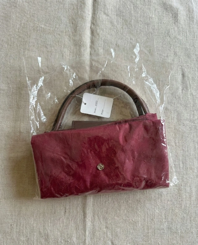 Brand new, never used foldable tote bag in a dusty-rose/pink tone. It has leather-style handles, a full zip-top closure, and a clean, minimal look—great for everyday carry or travel.