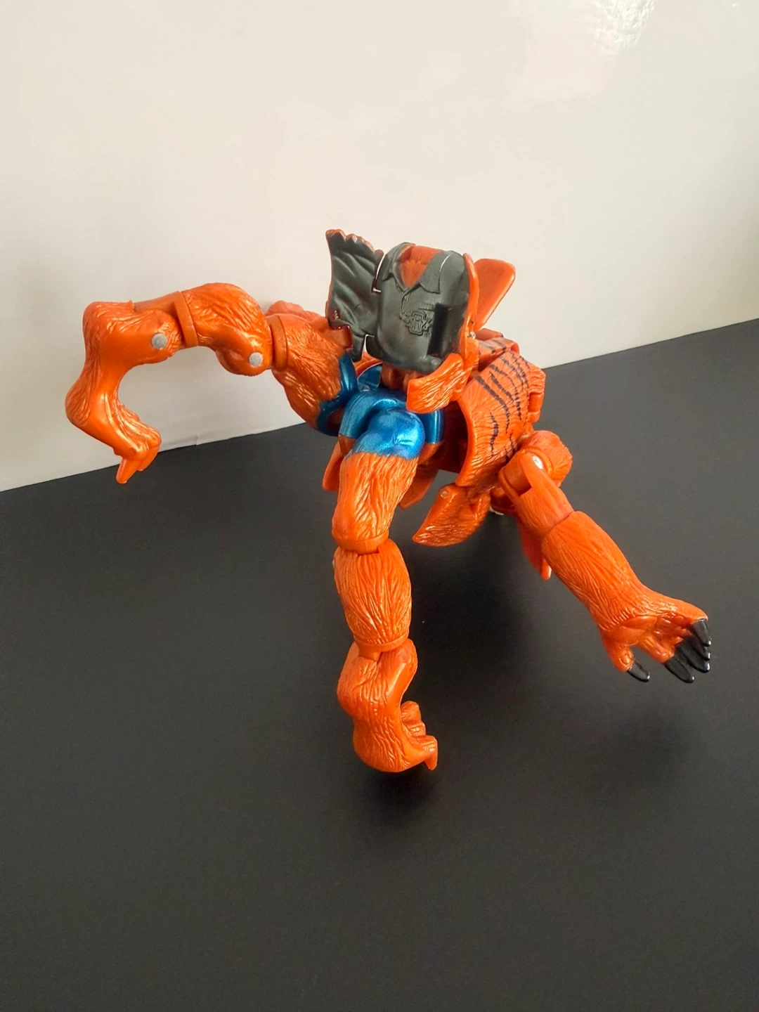 This is a Beast Wars Transmetal Optimus Primal action figure. It's an orange tiger robot that transforms into an ape-like creature. Includes the original gray head piece that flips down.