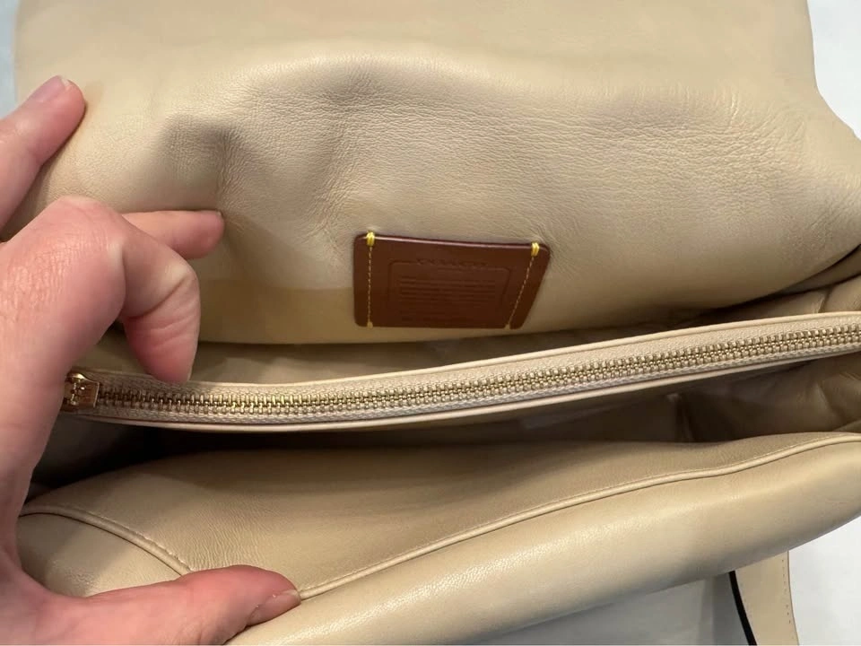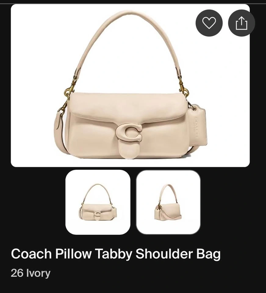 Coach Pillow Tabby 26 in Ivory. Excellent condition, no scratches or stains. Soft leather, only worn a few times. Comes with two straps, can be worn as a shoulder bag or crossbody. Measurements: Width: 10.25”, Height: 5.9”, Depth: 3”.