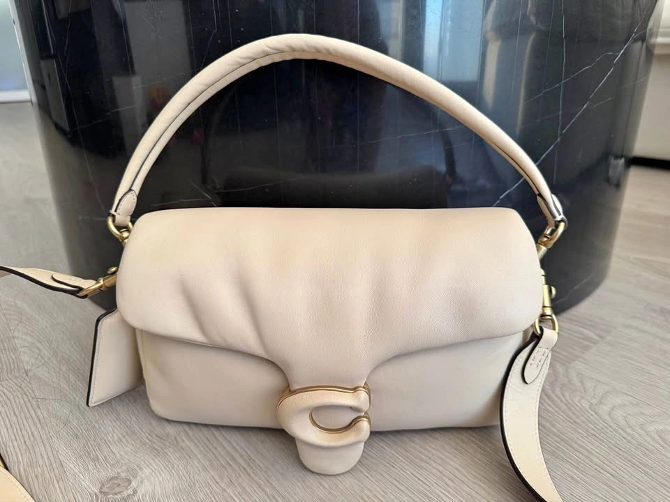Coach Pillow Tabby 26 in Ivory. Excellent condition, no scratches or stains. Soft leather, only worn a few times. Comes with two straps, can be worn as a shoulder bag or crossbody. Measurements: Width: 10.25”, Height: 5.9”, Depth: 3”.