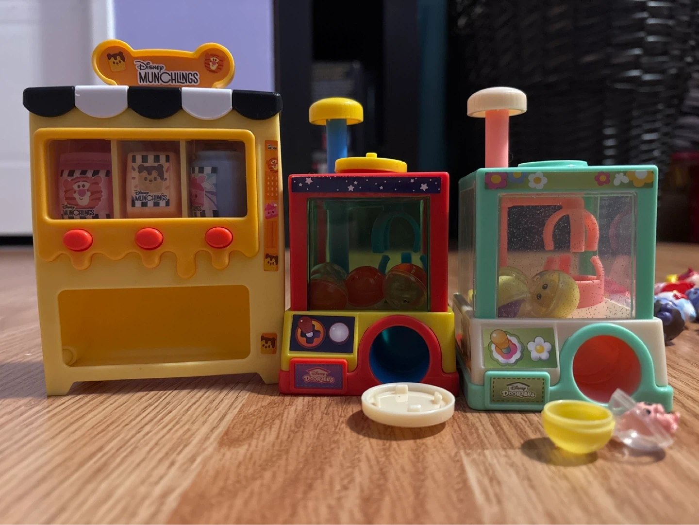 The claw machines work and have toys inside each ball, and the vending machine can fit the openable toys in them to be dispensed.
