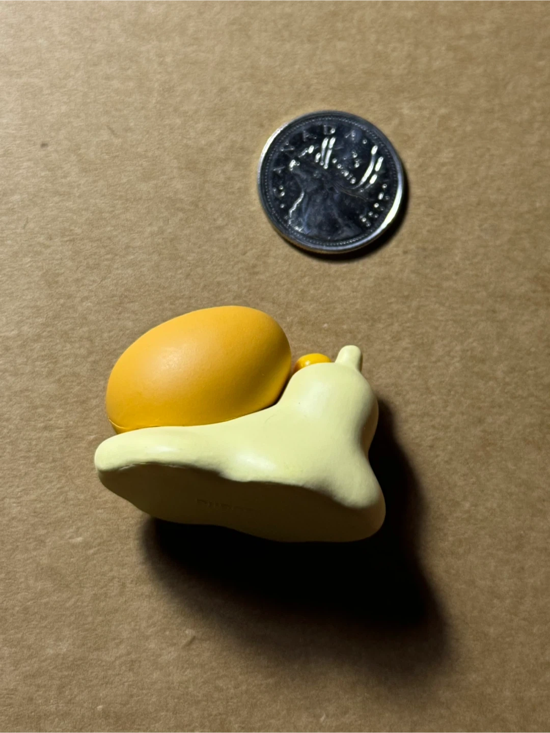 This is a cute little figurine of a snail with a shell resembling a boiled egg. It's made of a smooth, matte material and features a friendly smiling face. It would make a fun desk accessory or a small collectible item!