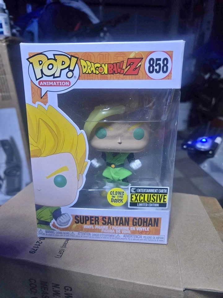 Awesome Funko Pop! Animation Super Saiyan Gohan figure. This is #858 from Dragon Ball Z. It glows in the dark and is an Entertainment Earth Exclusive Limited Edition. Still in original box, never opened.