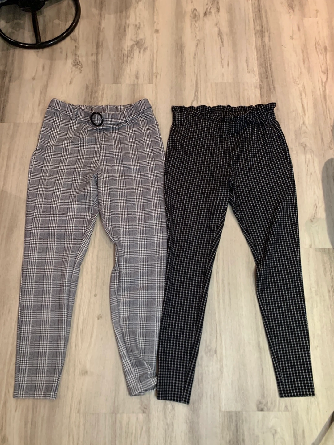 Two pairs of Shein Curve pants, both size 1XL! One is a grey and white plaid pattern, and the other is a black and white checkered pattern. Both are in great condition and ready for a new home