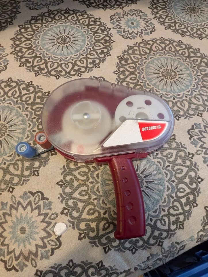 Gently used Dot Shot Pro handheld adhesive applicator for sale. This is a professional-grade tool used for fast, mess-free application of glue dots. It’s a great alternative to hot glue guns or tape for home businesses, packaging, or heavy-duty crafting. Good working condition. Clean and ready for a new roll. This is the dispenser only; refills are available online. Roll-on action allows for rapid placement of adhesive with no heat and no fumes. Lightweight and designed for comfortable, repetitive use. Perfect for e-commerce sellers, scrapbookers & crafters, and fulfillment/bindery. Cash only. Pickup at Markham Rd and 401 (Scarborough).