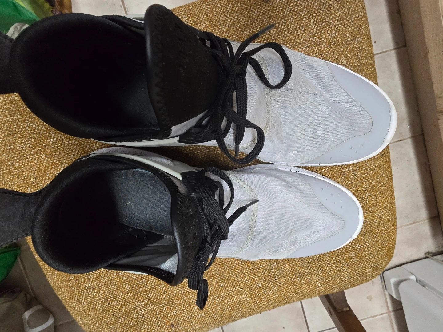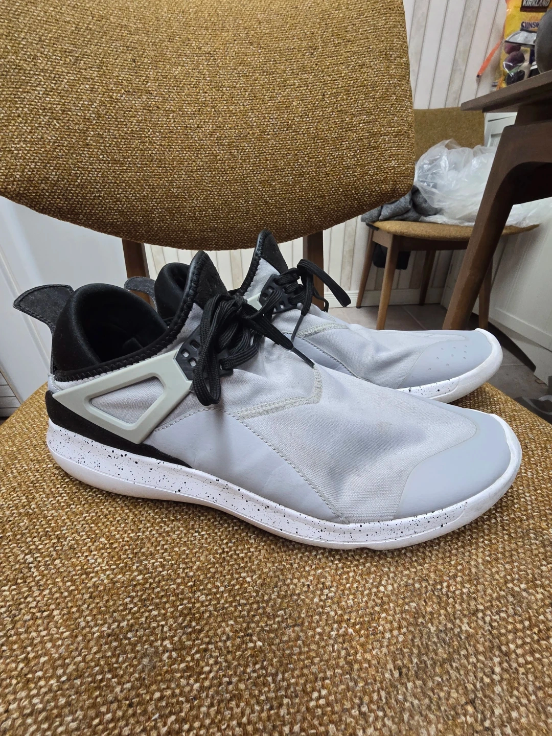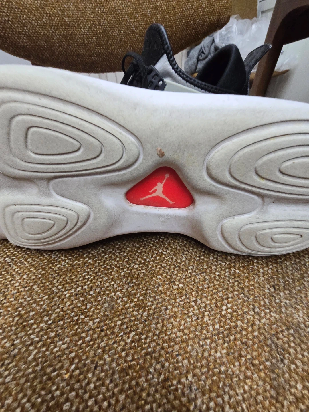 These grey and black Air Jordan shoes are perfect for athletic activities. They feature a durable rubber sole and a comfortable textile upper. These sneakers offer excellent support for your feet.