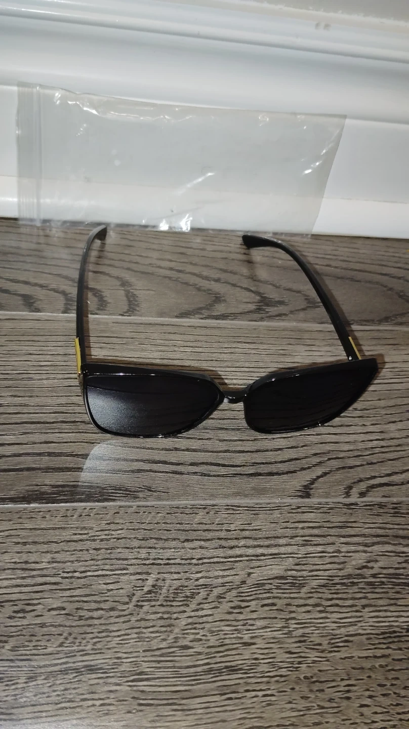 Selling a pair of stylish black cat-eye sunglasses with gold design. They're in great condition and ready to add a touch of flair to your look!