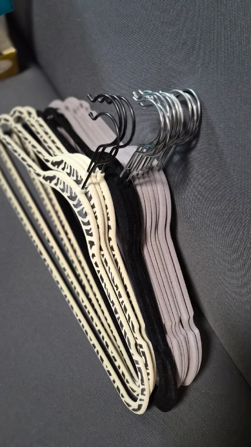Selling a collection of velvet clothes hangers in various colours and styles! These hangers are great for keeping your clothes from slipping and saving space in your closet
