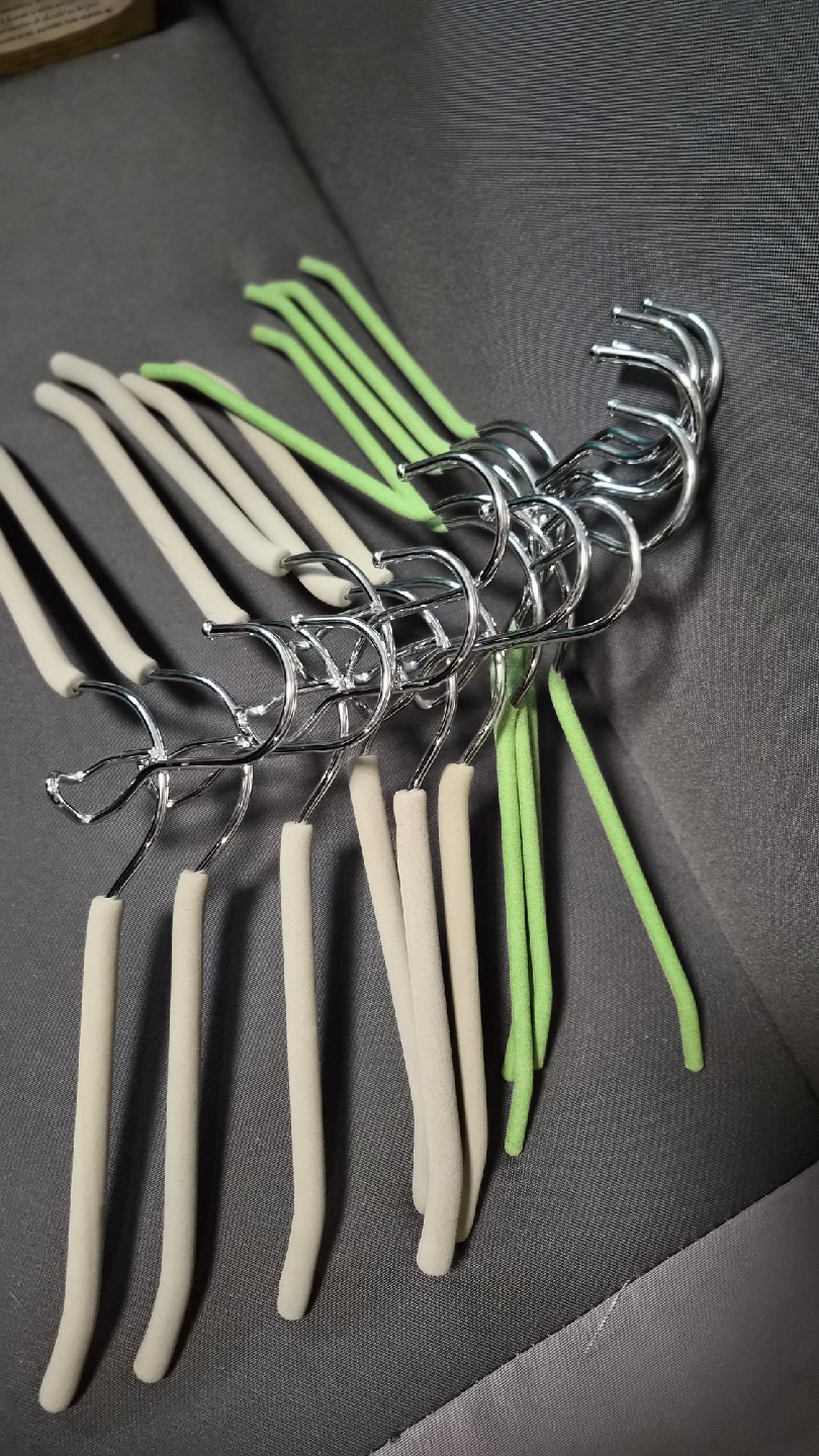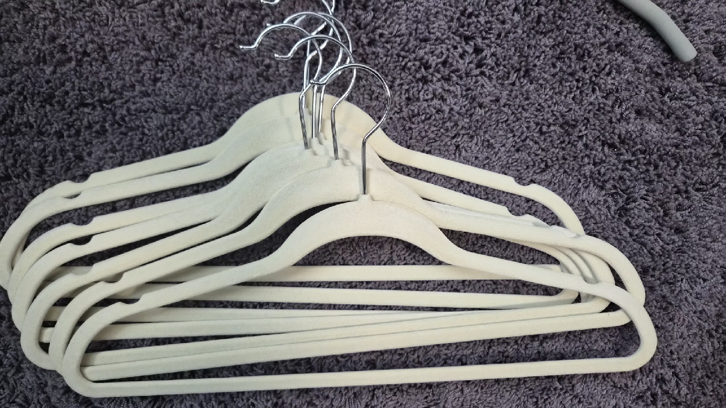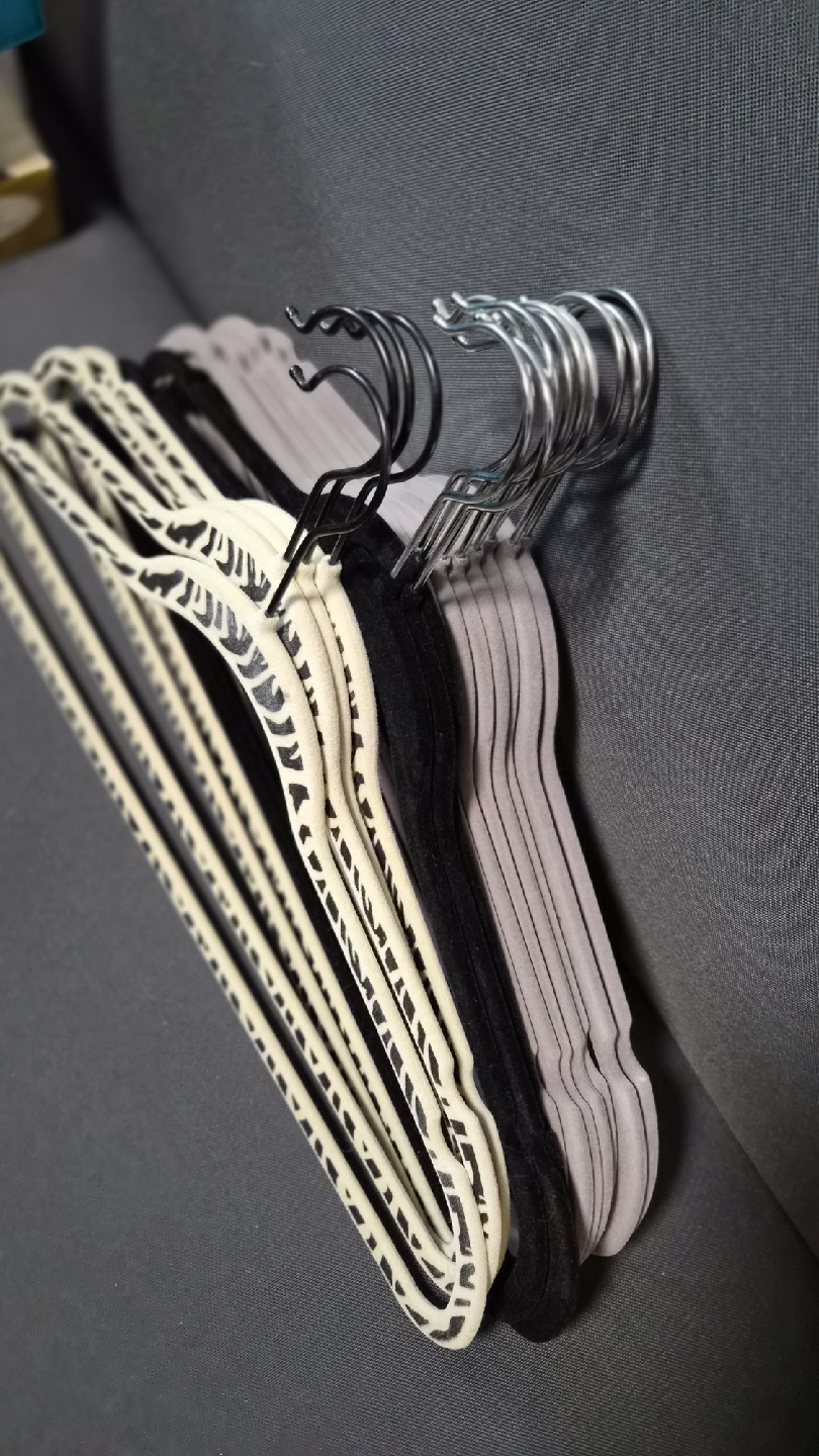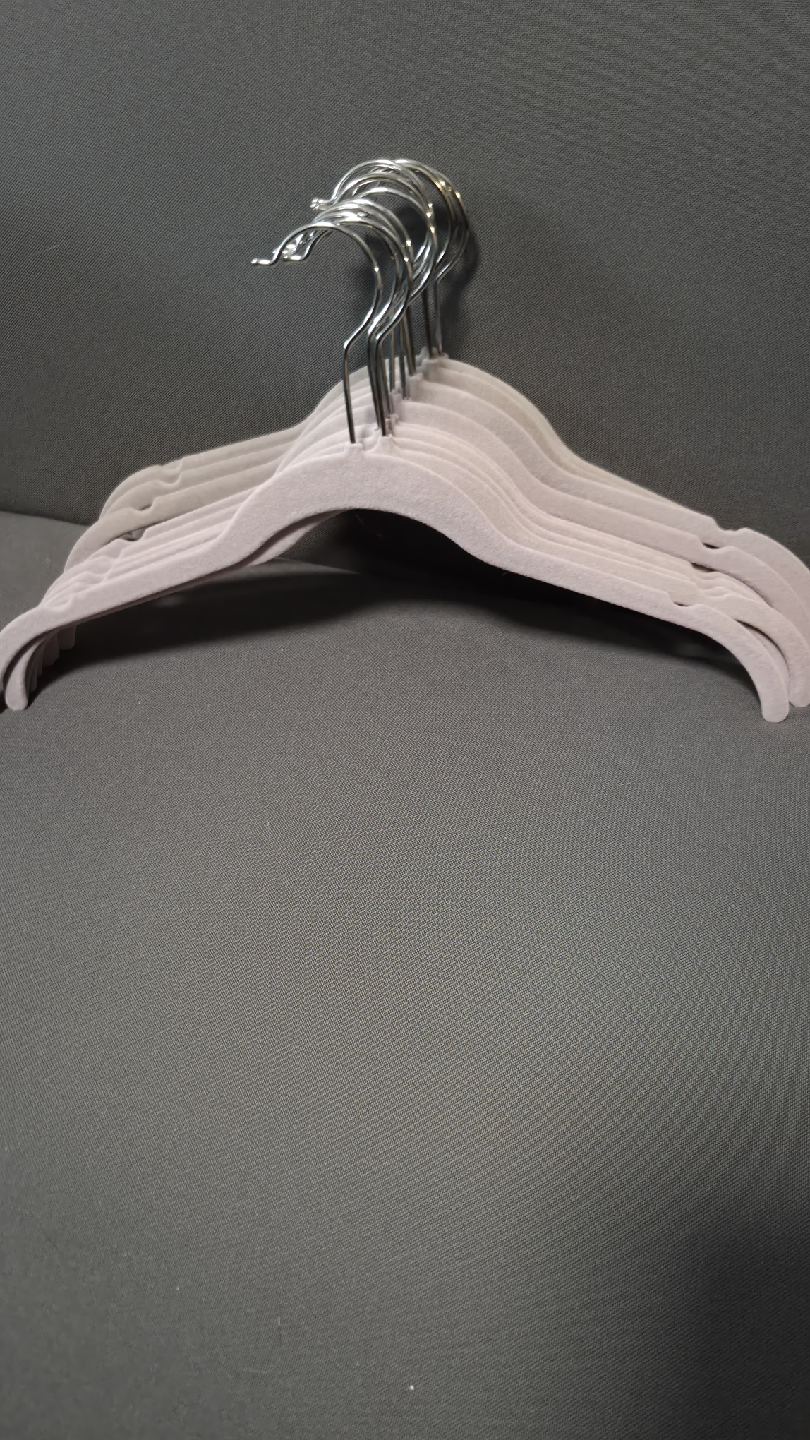 Selling a collection of velvet clothes hangers in various colours and styles! These hangers are great for keeping your clothes from slipping and saving space in your closet