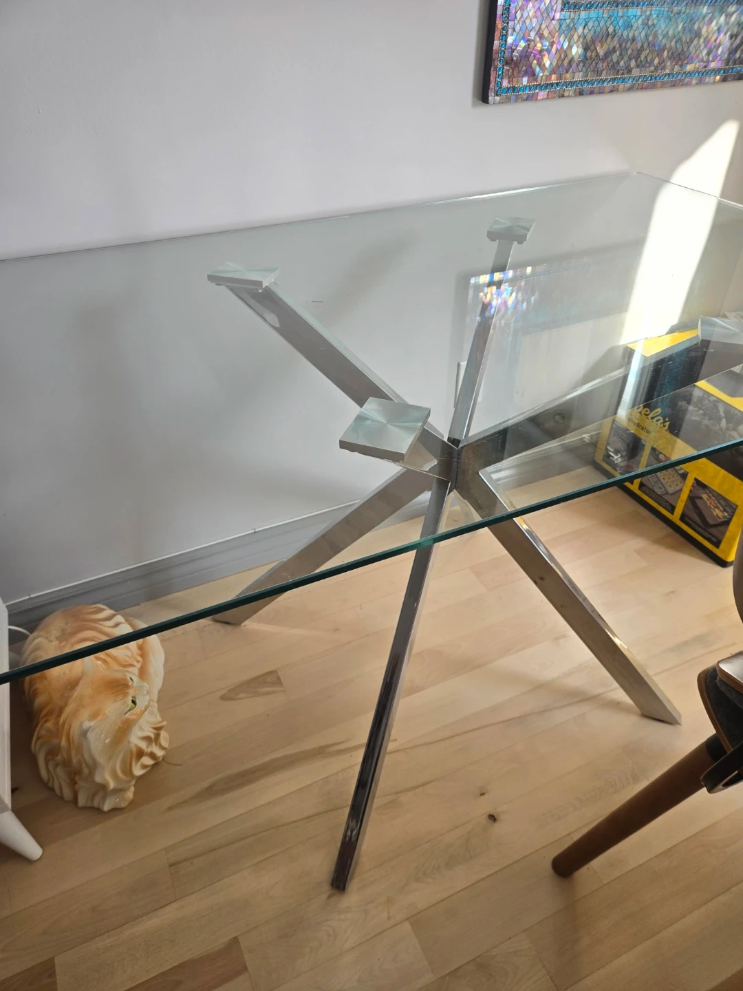 Selling a glass top dining table with a chrome base. It’s in great condition and would be a stylish addition to any dining room