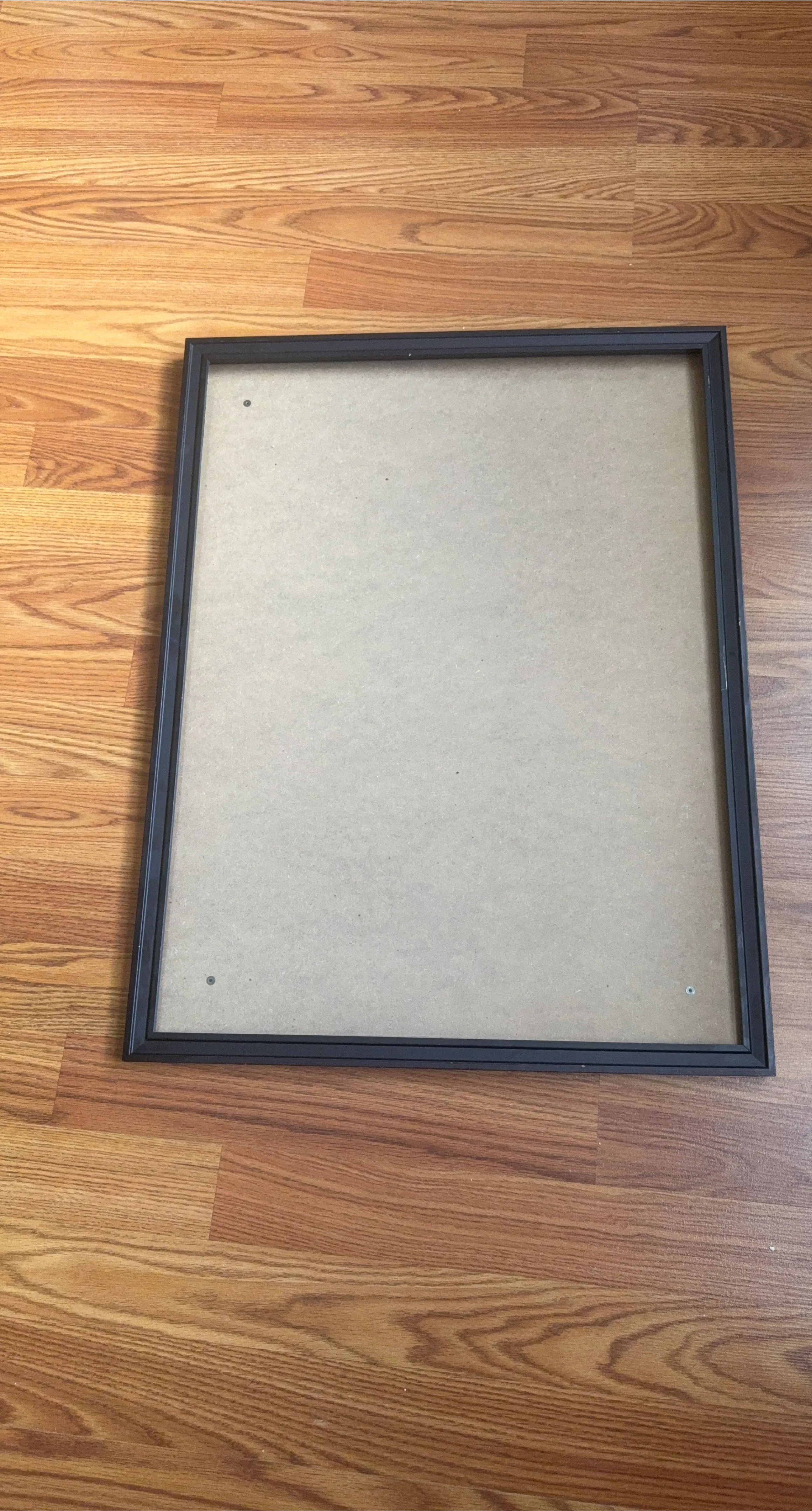A black photo frame. It's a simple, utilitarian frame ready for your pictures. This frame is suitable for displaying artwork or photographs. 19.25" x 25.25" (jigsaw puzzle picture and plants sold separately)