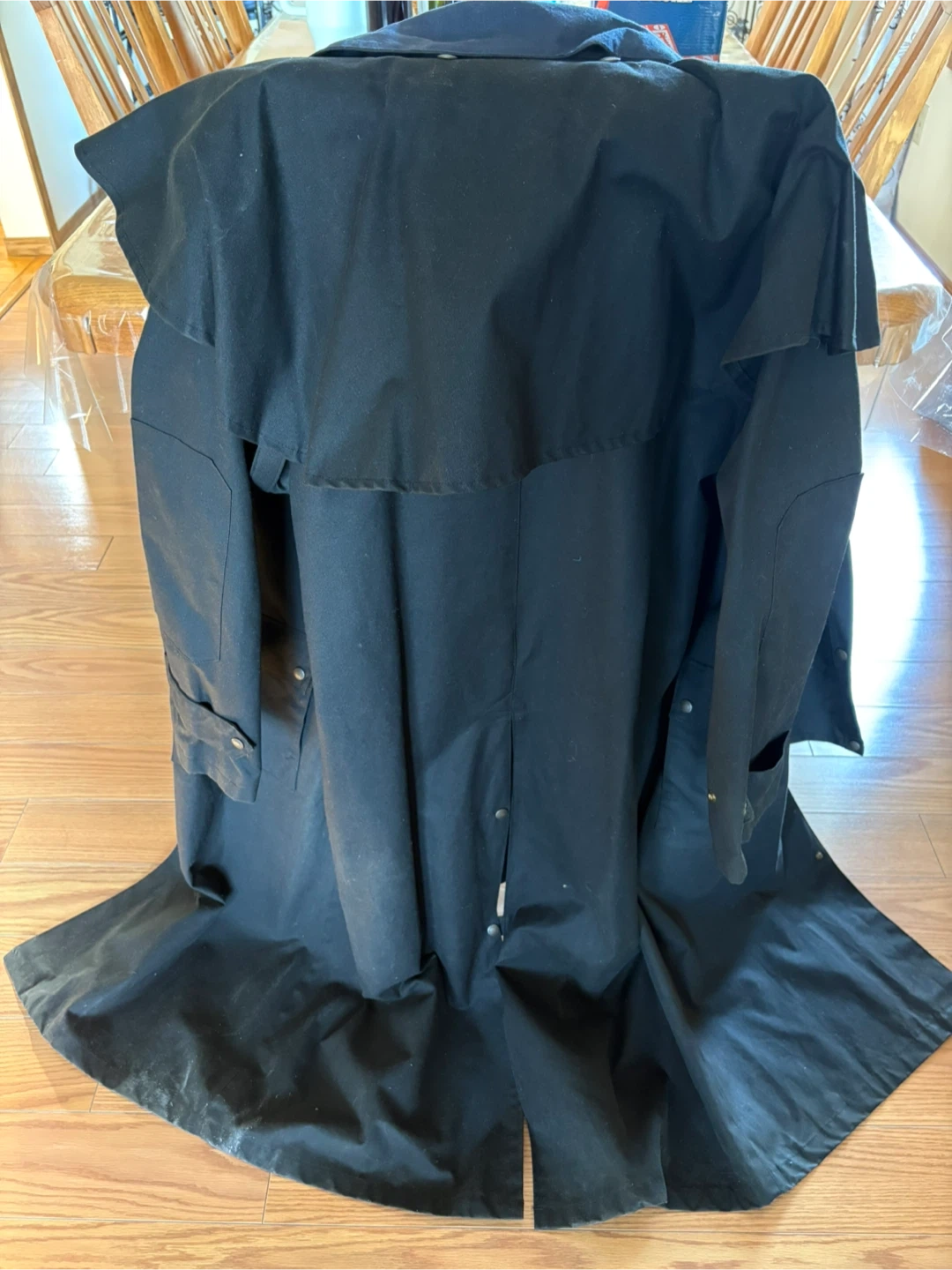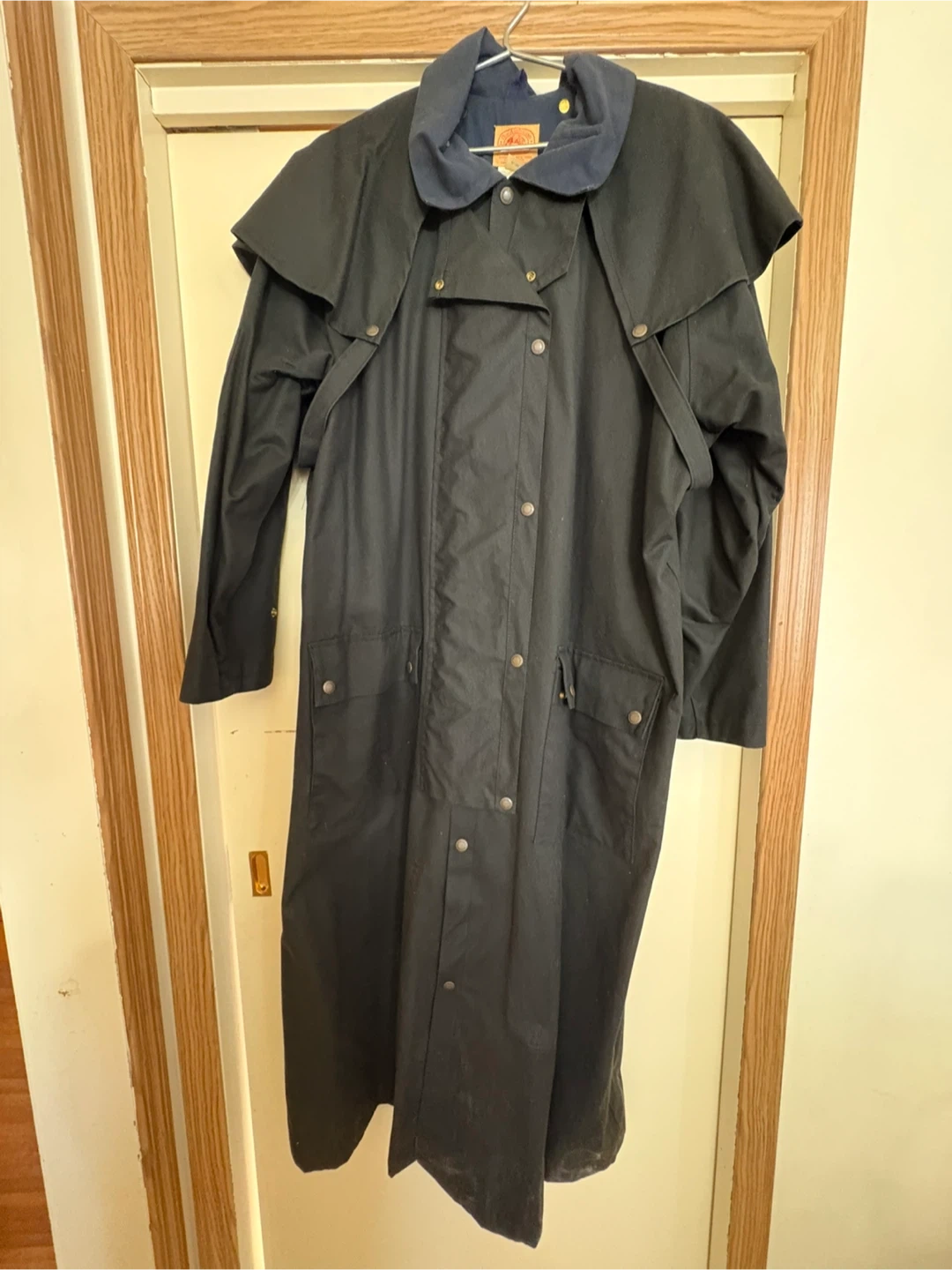 The Australian Outback Collection duster coat in black. It's made in Canada. This coat is size XL/XG. It features a full button-up front and two large pockets. Pick up only south side location, DM me for more info