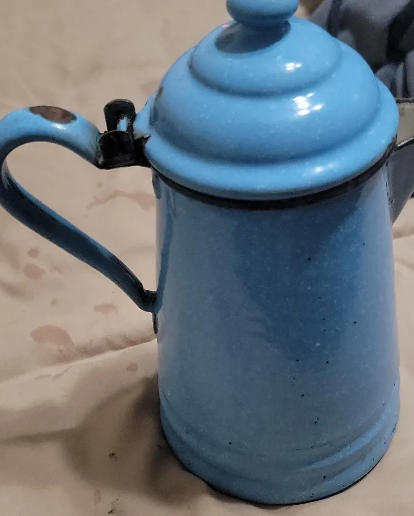 Vintage Blue Enamelware Coffee Pot