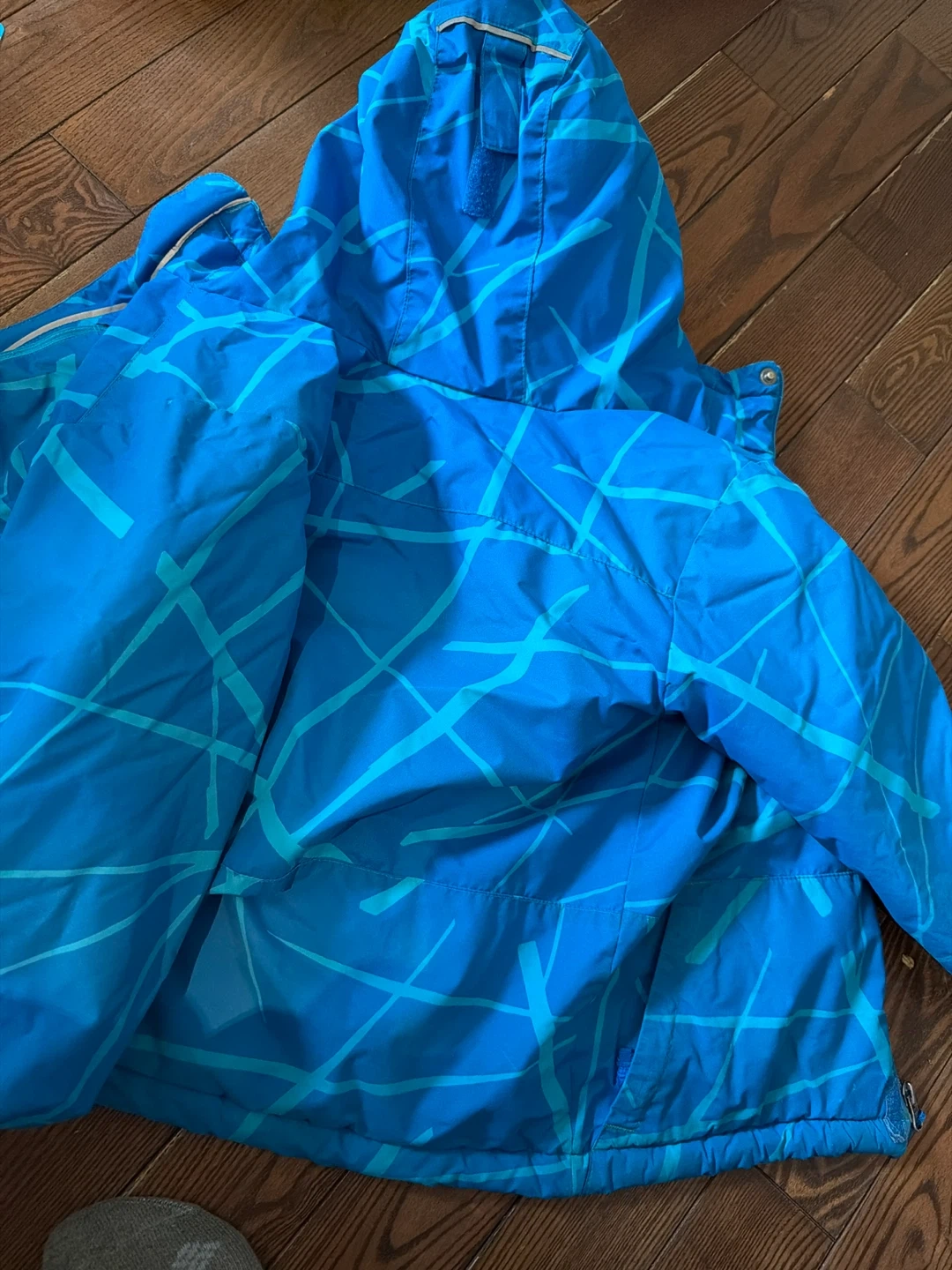 Columbia boys' blue winter jacket with a cool abstract pattern.