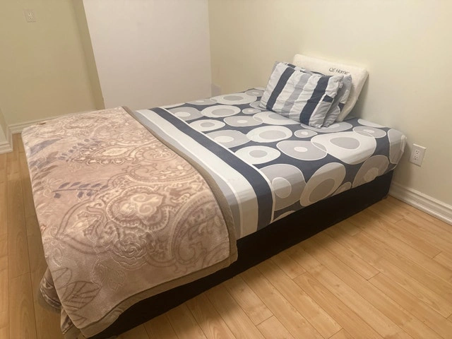 As part of my moving out sale, I'm offering a sectional couch set, a single bed frame, and a dining table with 6 chairs. All items are in used condition but have been well-maintained. Perfect for furnishing a new home without breaking the bank. The condition is used, so please manage your expectations accordingly. Sofa - Carpet in the photo is not for sale. Dining Table - Cushions kept on the chairs are not for sale. Bed - Sheets, blankets, and cushions in the photo are not for sale. You can ask for more photos. Pickup Location: Keswick, Georgia, ON. Contact: +1 437 254 7263. Cash accepted.