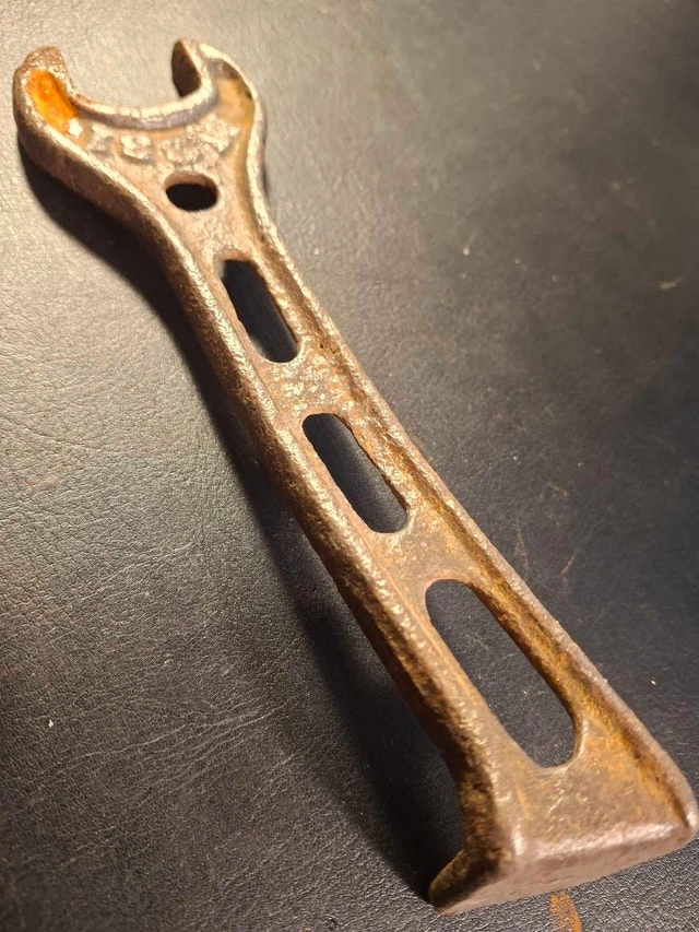 Here's a vintage wrench, showing its age with a charming patina of rust. It measures approximately 15cm in length and is ready to tackle your small renovation project! Given it's a bit rough around the edges, I'm letting it go for a song. Imagine the stories it could tell! If the ad is up, the wrench is available, so no need to ask. Grab it before it rusts away! Cash accepted.