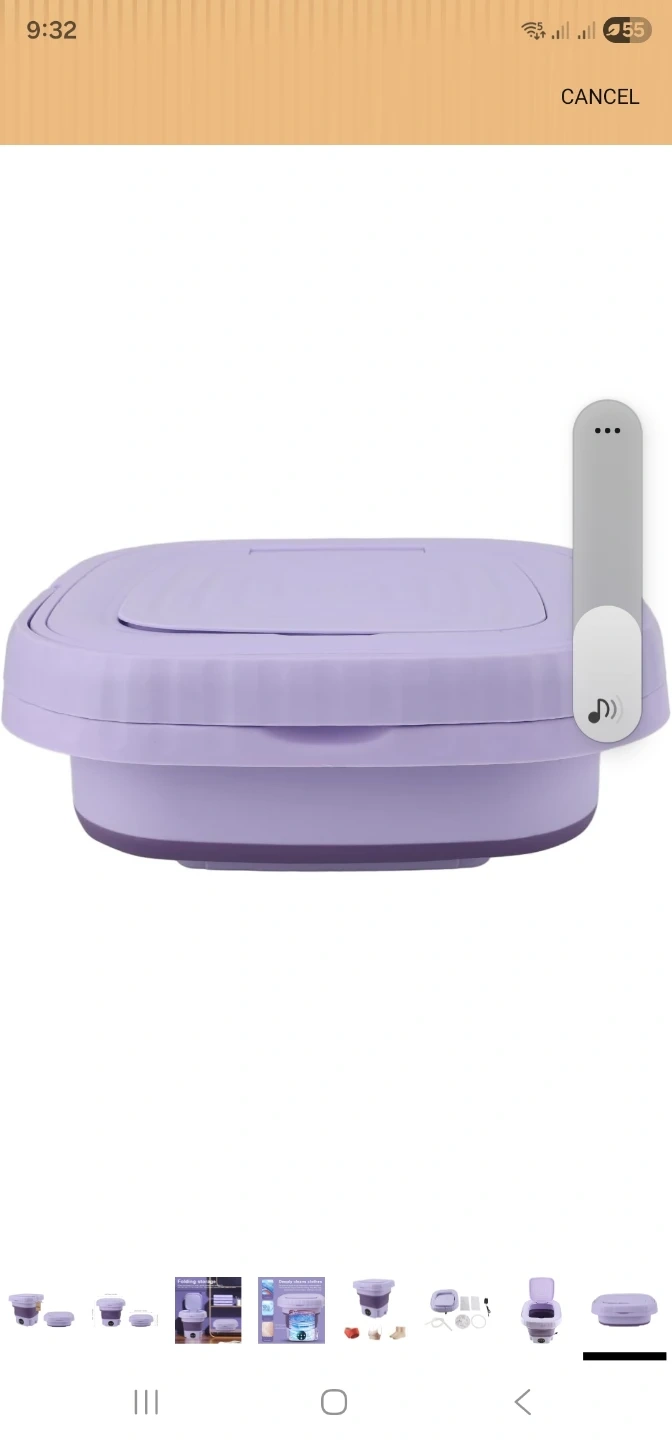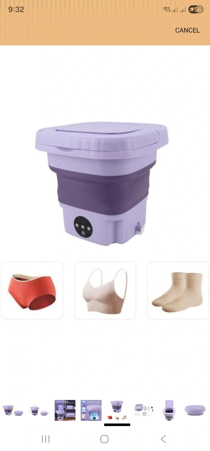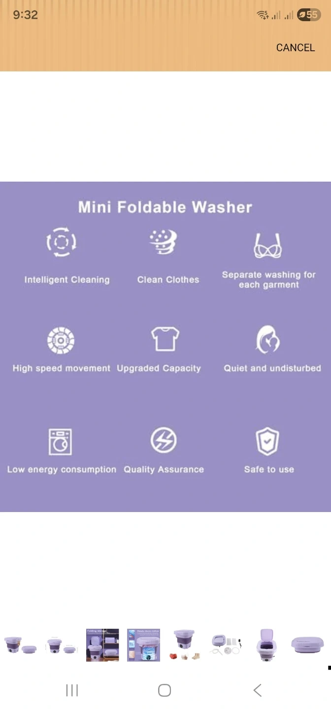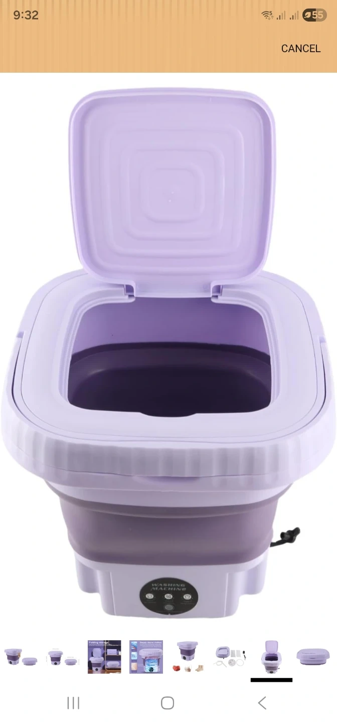 This portable washing machine has a 11L capacity and a folding design for easy storage. It's made of high-temperature resistant material and can handle up to 10kg of water for soaking and deep cleaning. Dimensions are 29.5cm x 29.5cm x 29cm when open, and it collapses to 14.5cm height.