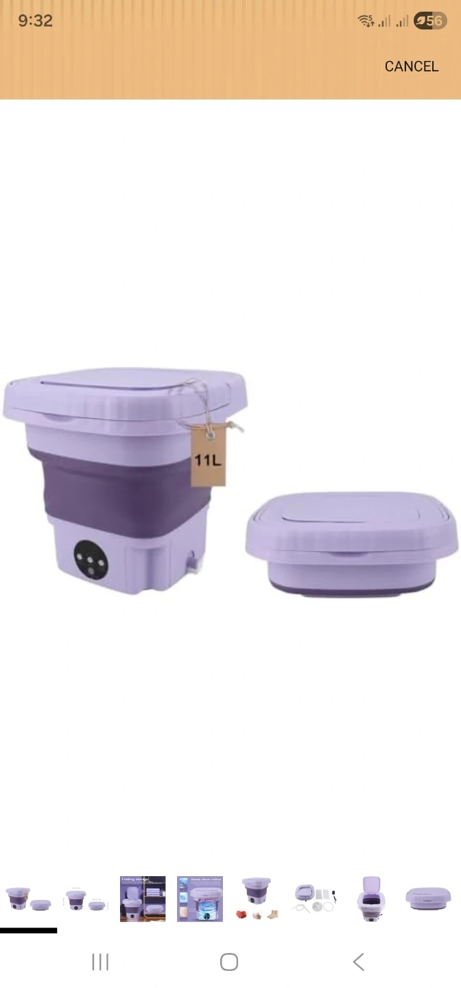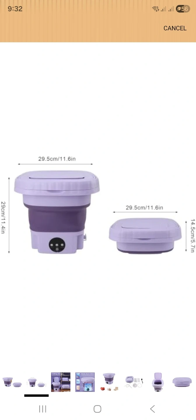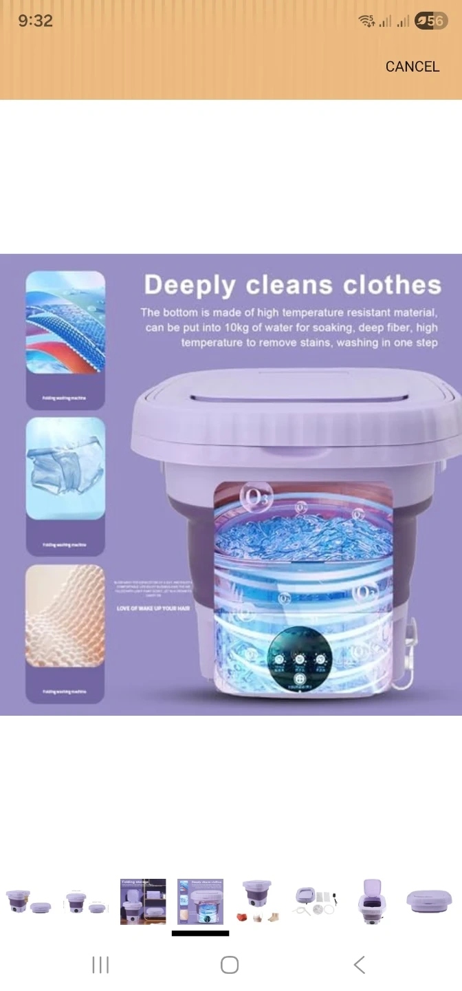 This portable washing machine has a 11L capacity and a folding design for easy storage. It's made of high-temperature resistant material and can handle up to 10kg of water for soaking and deep cleaning. Dimensions are 29.5cm x 29.5cm x 29cm when open, and it collapses to 14.5cm height.