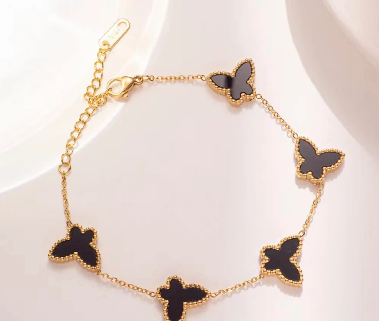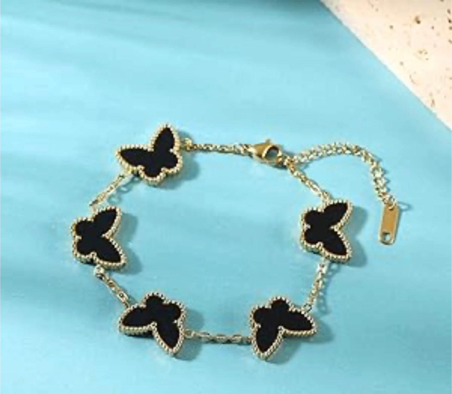 Selling a lovely butterfly charm bracelet! It features black butterfly charms on a gold- plated tone chain. This bracelet is perfect for adding a touch of elegance to any outfit