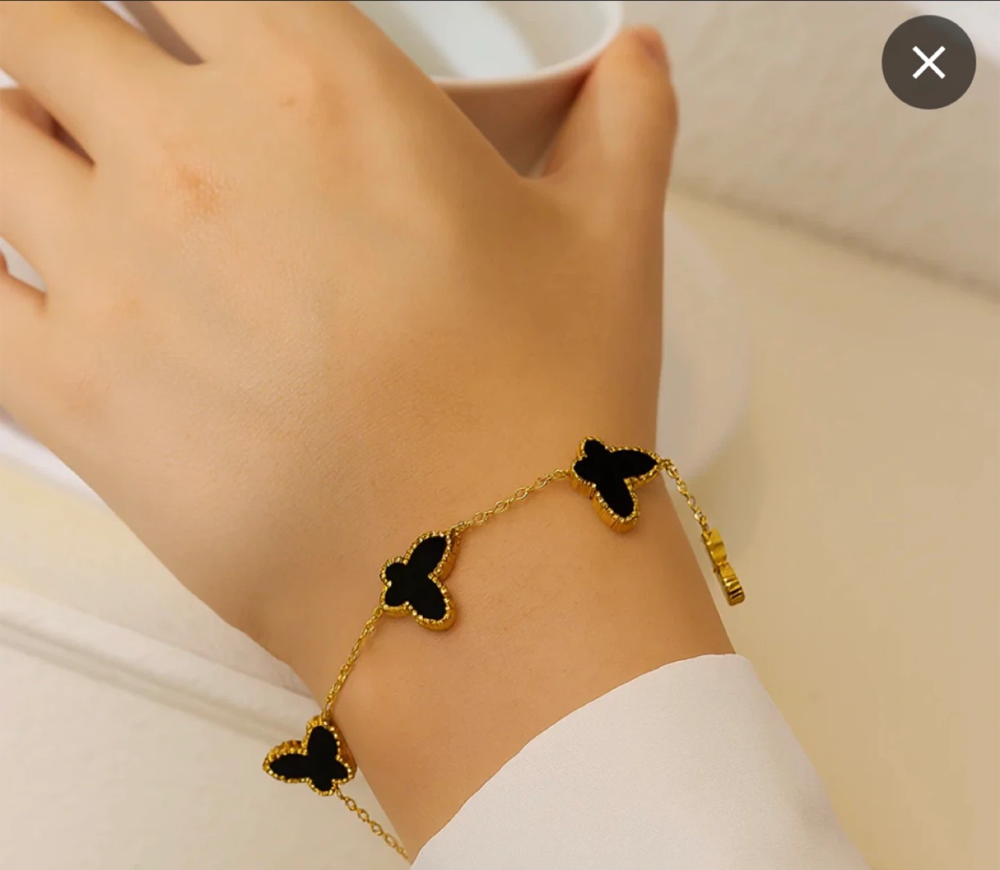 Selling a lovely butterfly charm bracelet! It features black butterfly charms on a gold- plated tone chain. This bracelet is perfect for adding a touch of elegance to any outfit