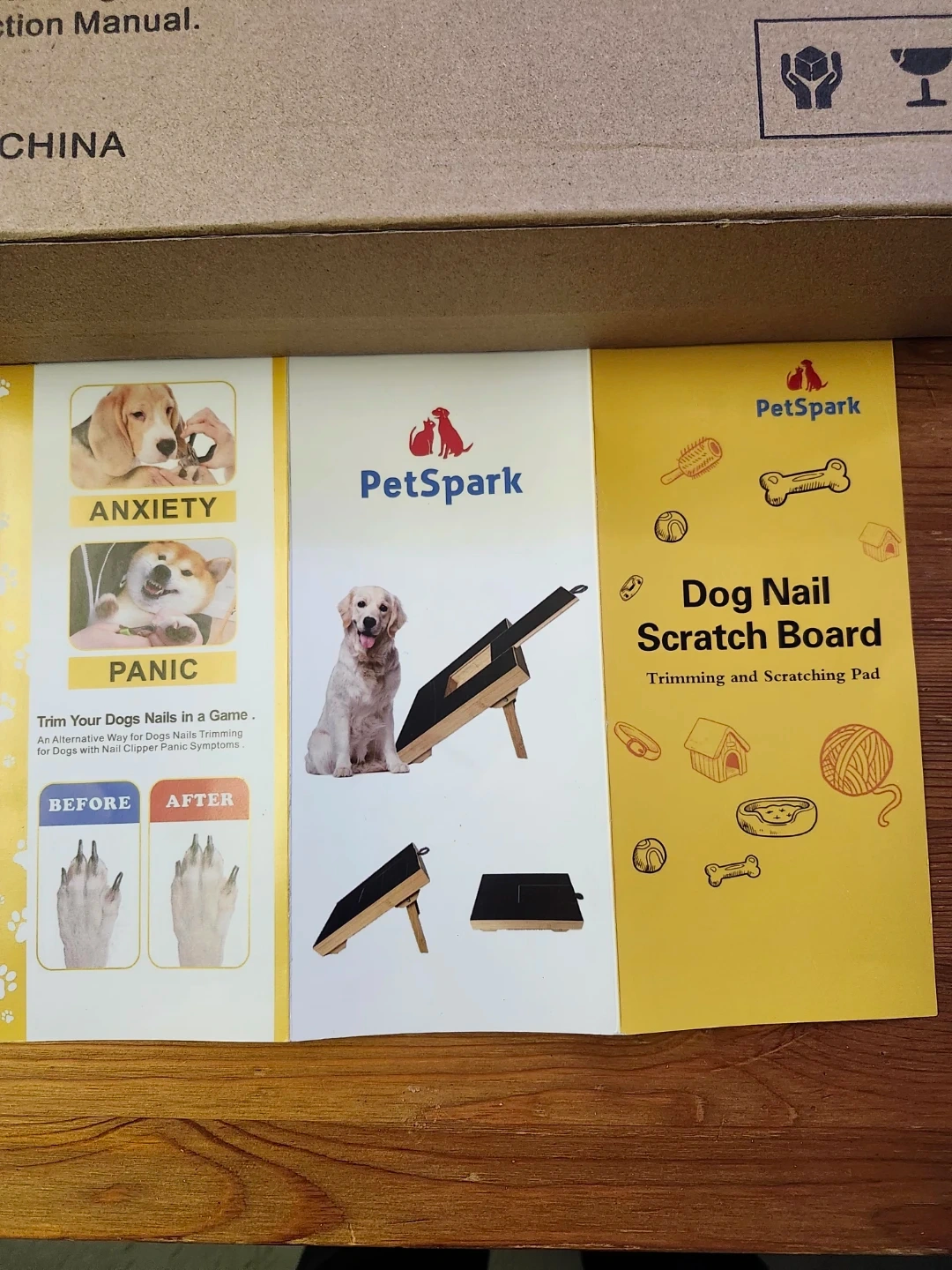 This is the PetSpark Dog Nail Scratch Board, a trimming and scratching pad. It's an alternative way to trim dogs' nails in a game. This board is designed for dogs with nail clipper panic symptoms. It makes nail trimming easier and less stressful for your pet!