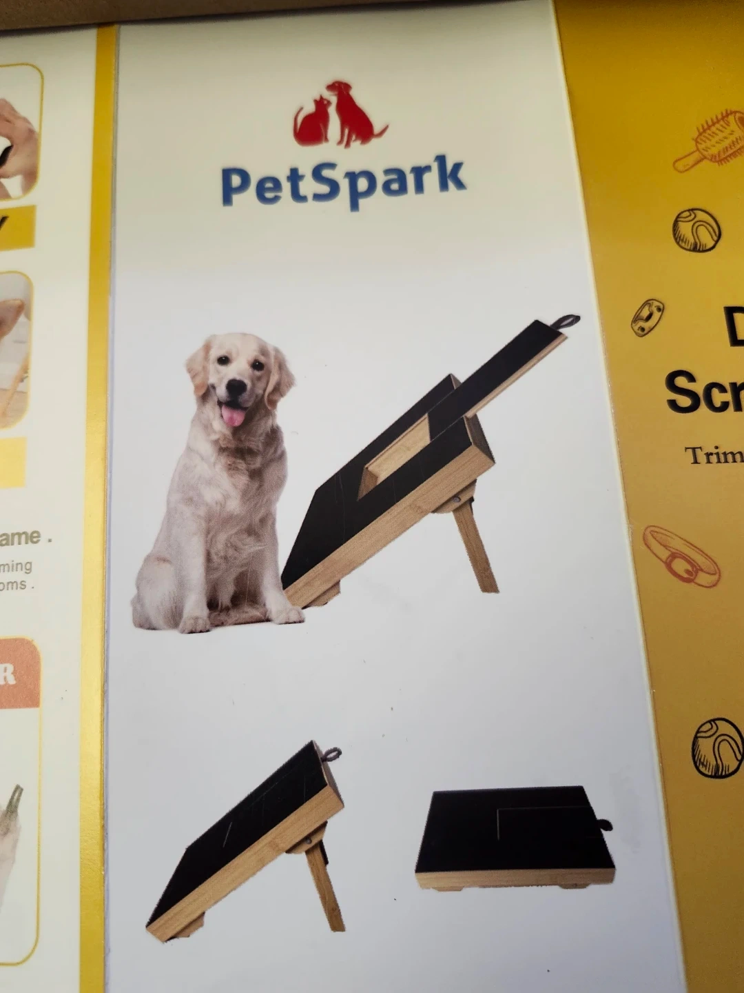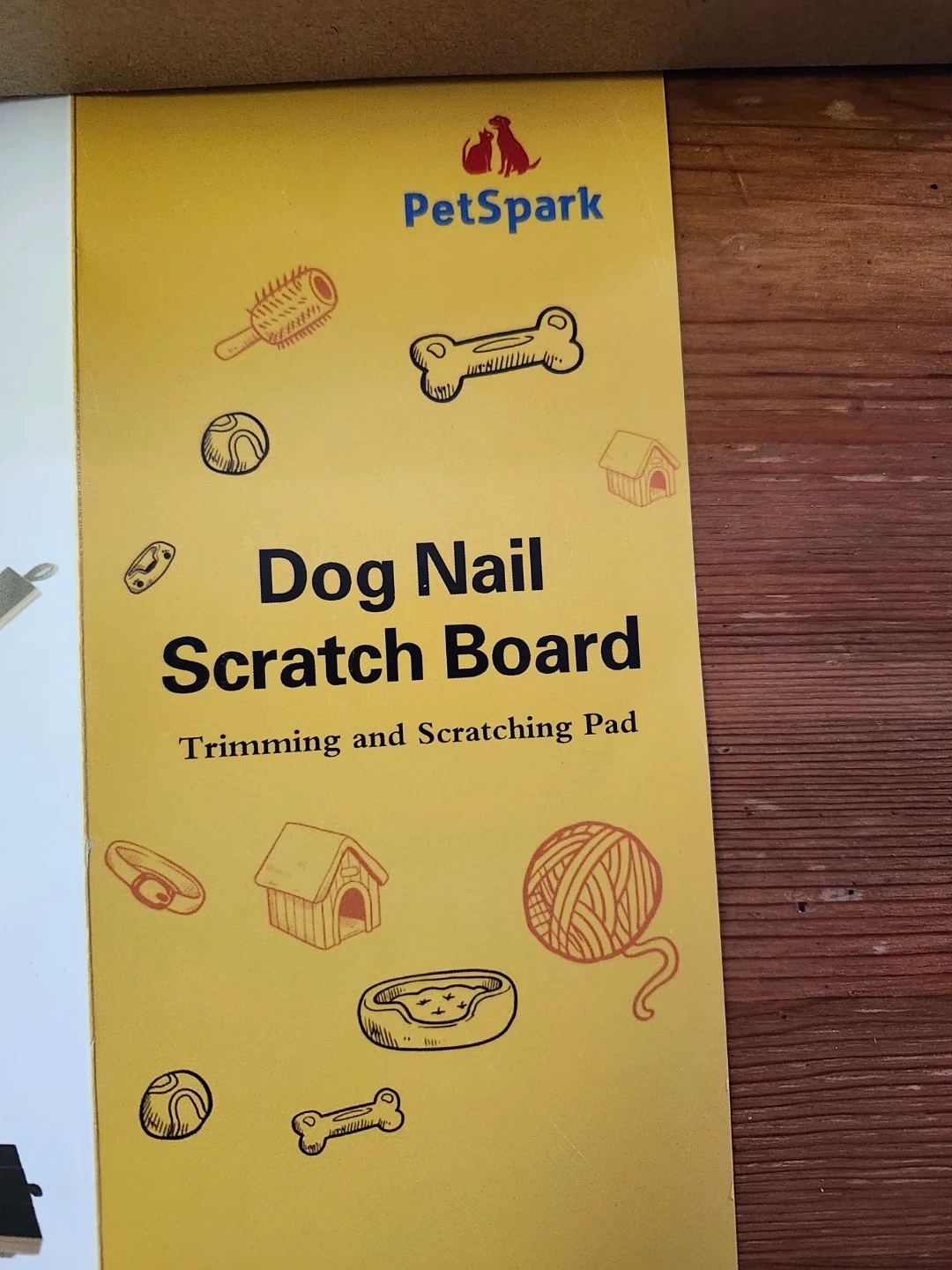 This is the PetSpark Dog Nail Scratch Board, a trimming and scratching pad. It's an alternative way to trim dogs' nails in a game. This board is designed for dogs with nail clipper panic symptoms. It makes nail trimming easier and less stressful for your pet!