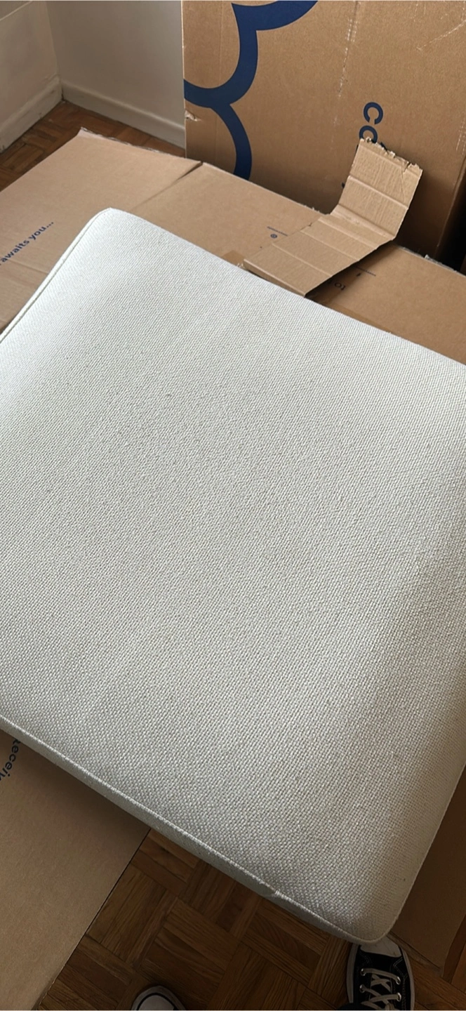 Selling the OG Cozey couch in Ivory, comes with matching ottoman, and matte black metal legs. Durable and comfortable.