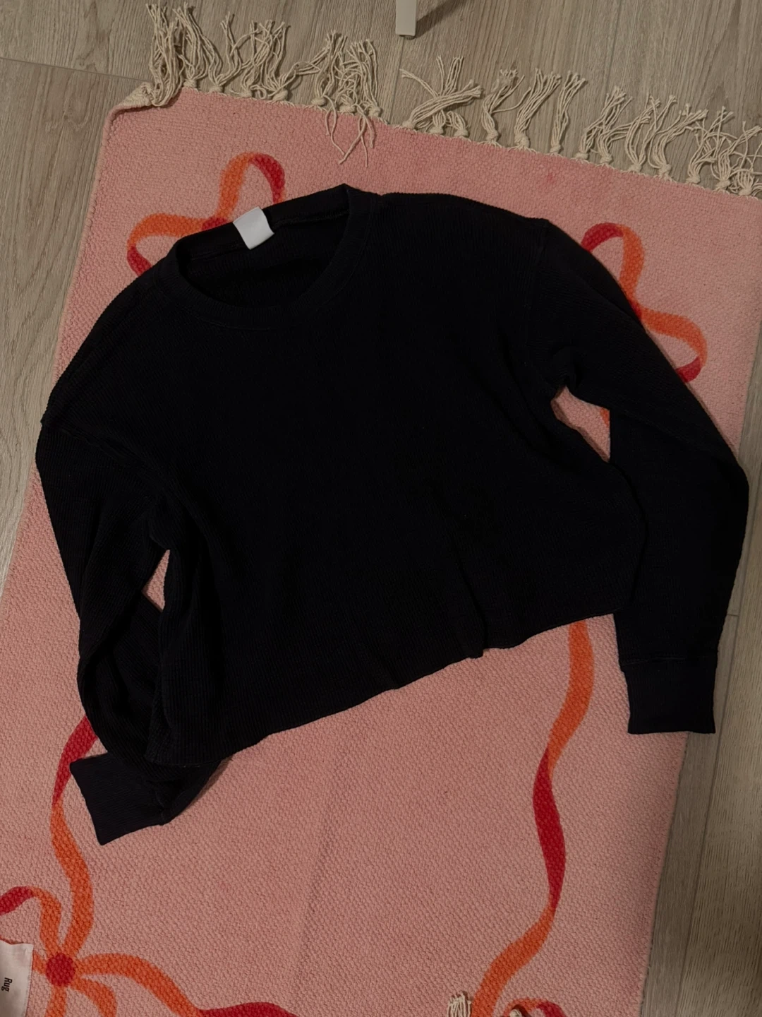 This is a black long sleeve thermal top from Tna. It's a size XS. The waffle knit material makes it comfy and warm.