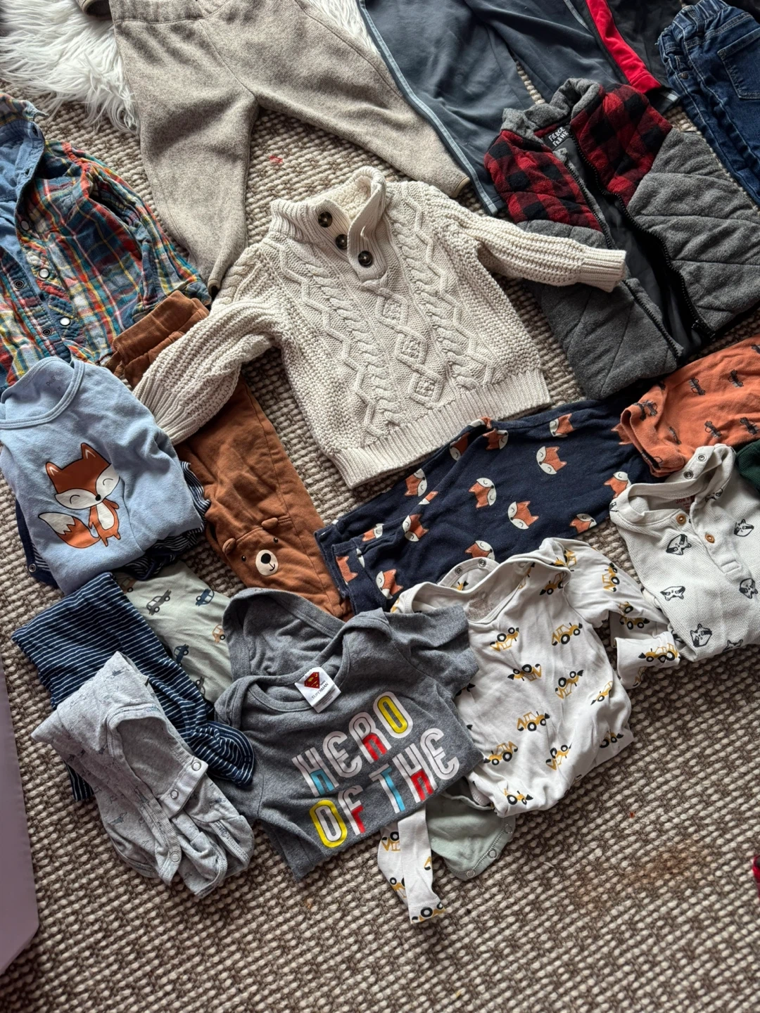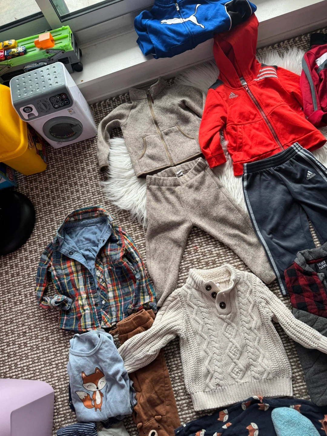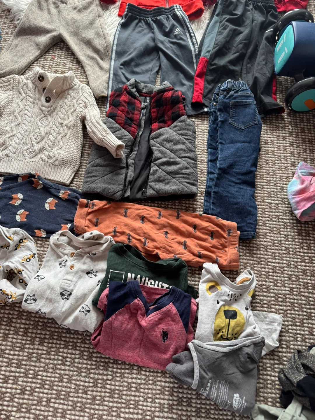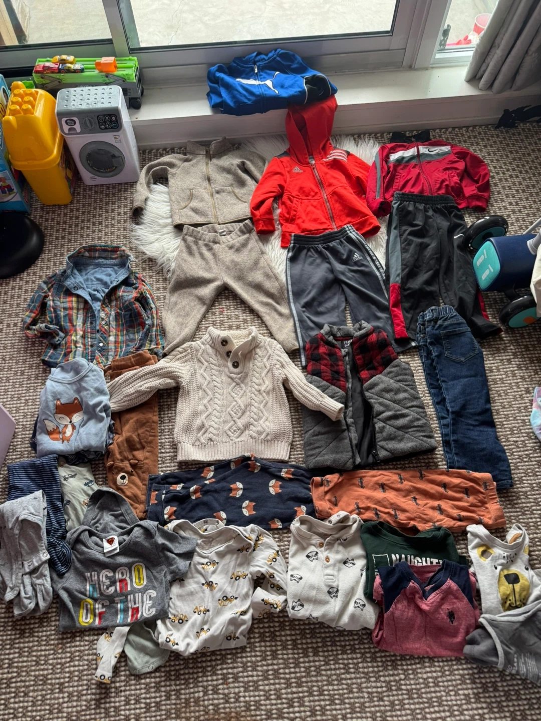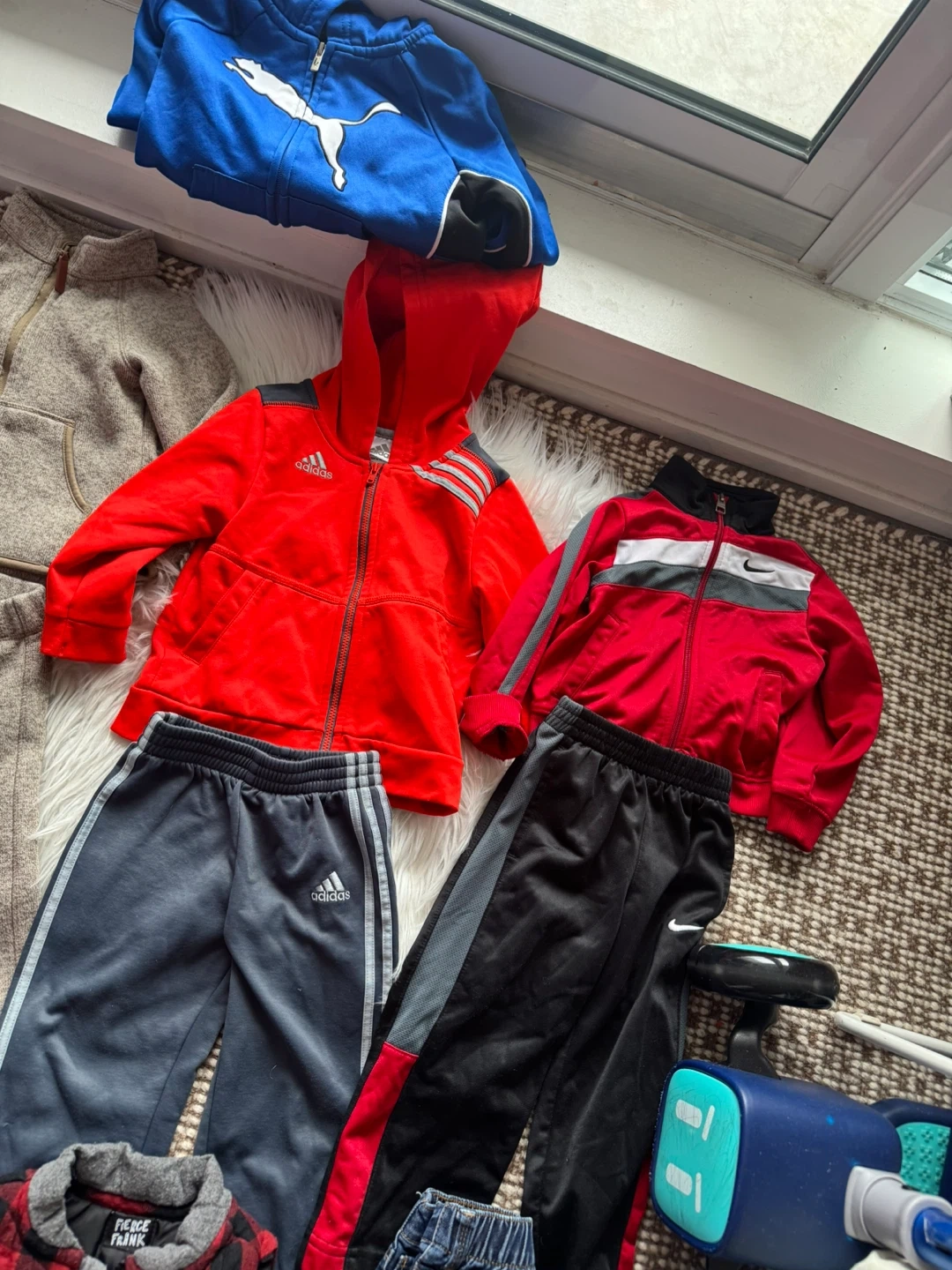 Lot of baby clothes 1-2 years, complete tracksuits, sweater, pants, diaper covers, chalet, (adidas, Nike, gap, H&M) all for $35, A free pack of training pants is included