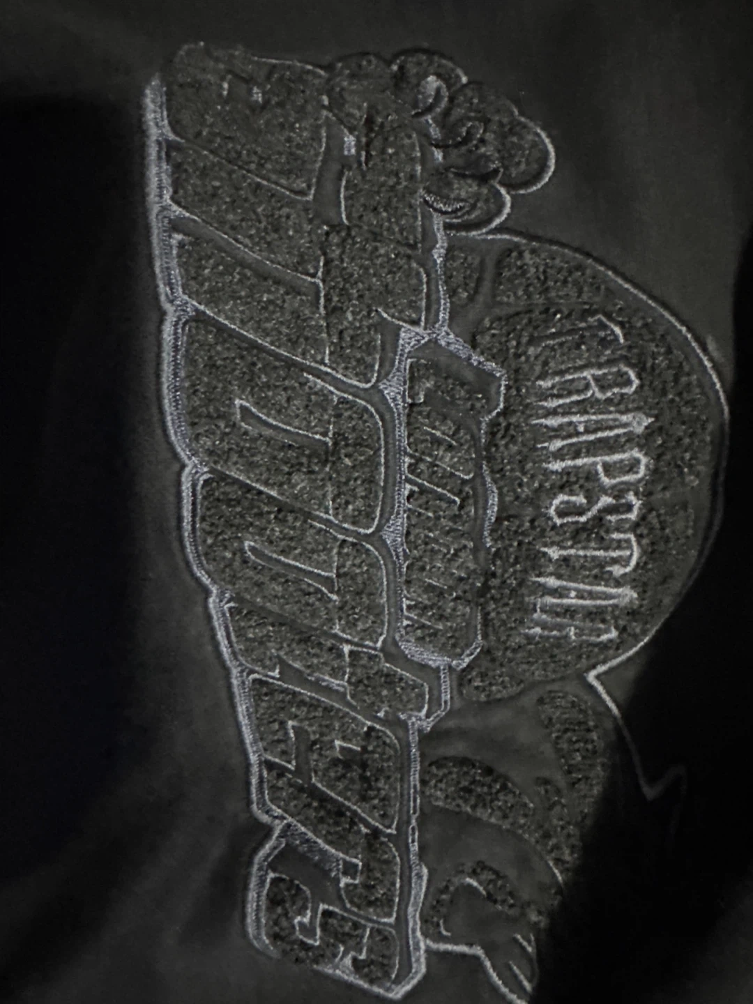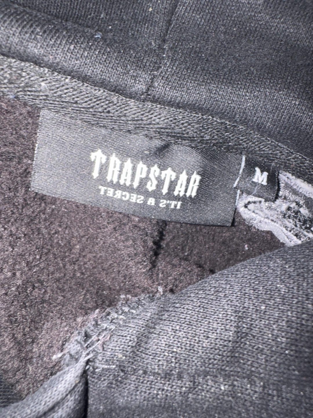 Black Trapstar hoodie with a chenille logo on the chest. It's a size medium. The fabric is a soft cotton blend. Pretty new selling because I don’t need reasonable price is 40