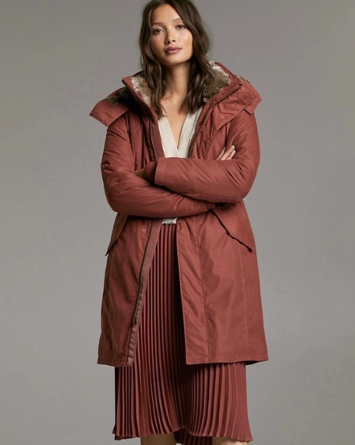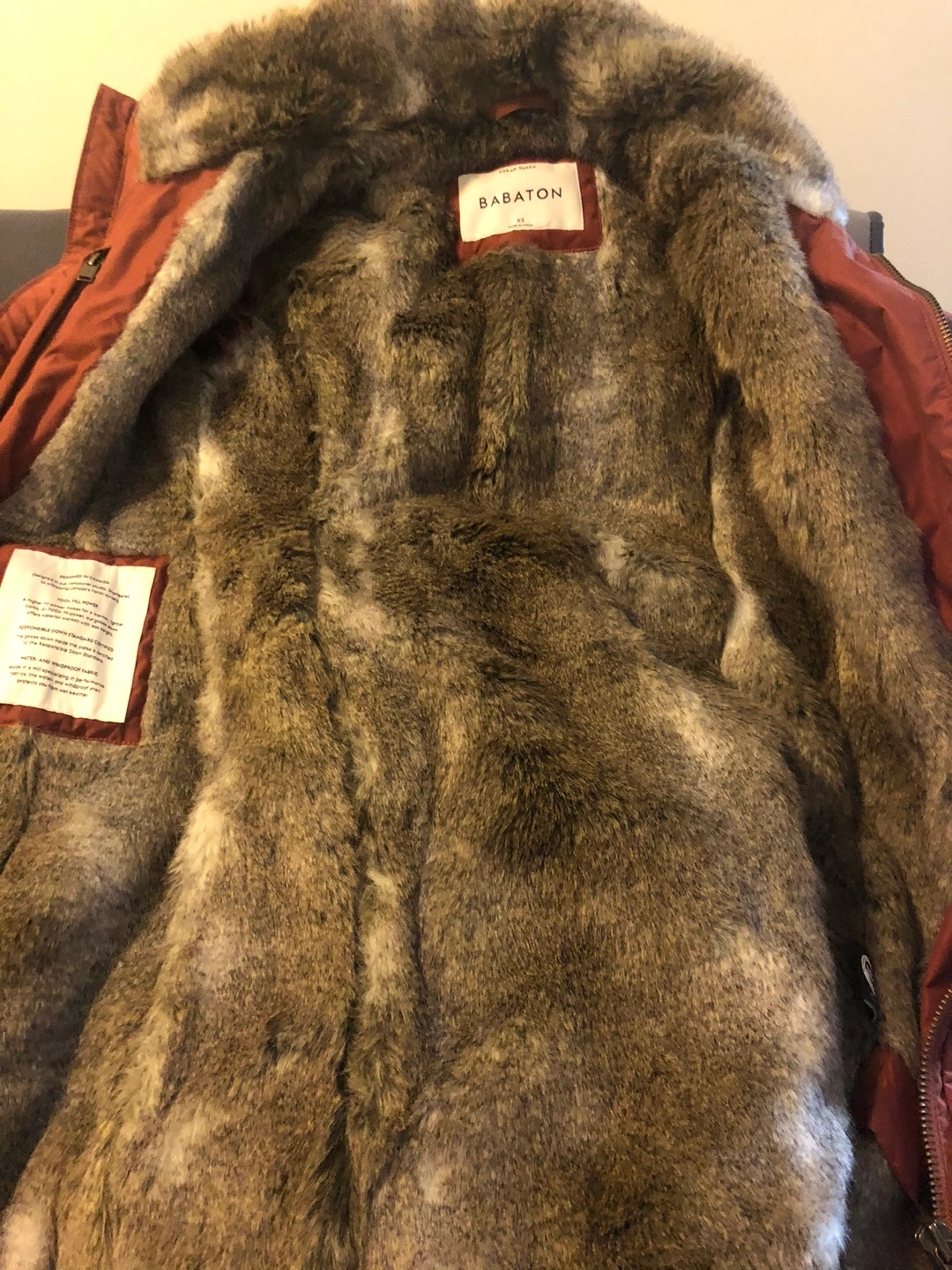 Aritzia, Long winter coat with faux fur hood, size XS. Worn only twice, in mint condition