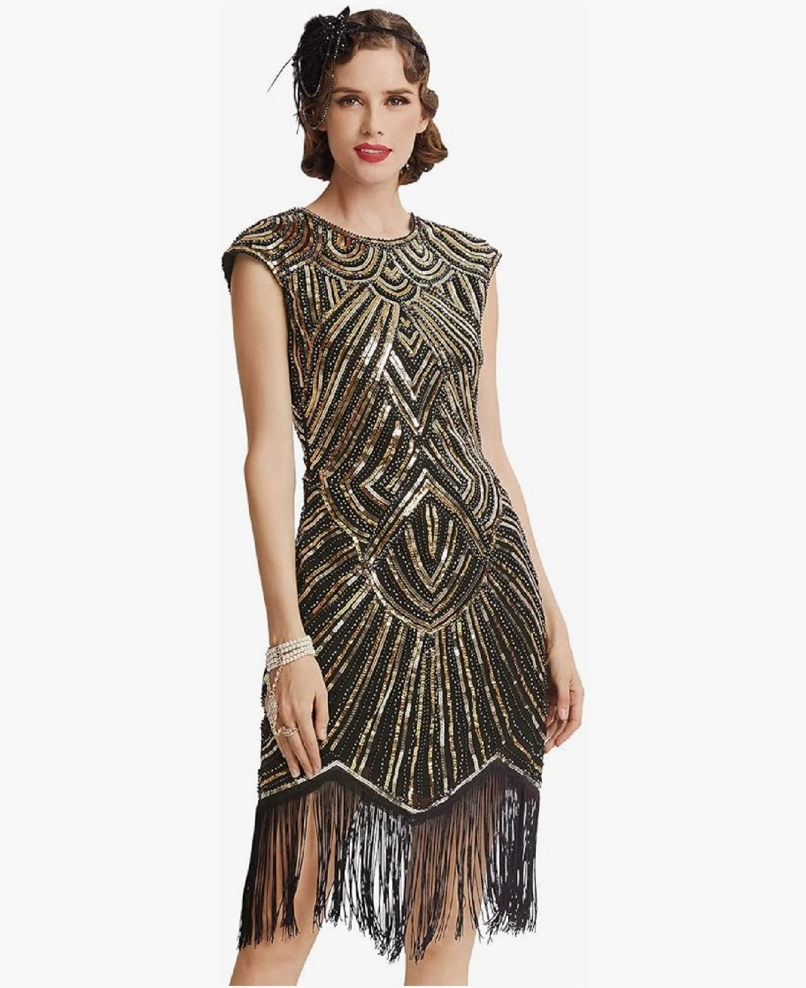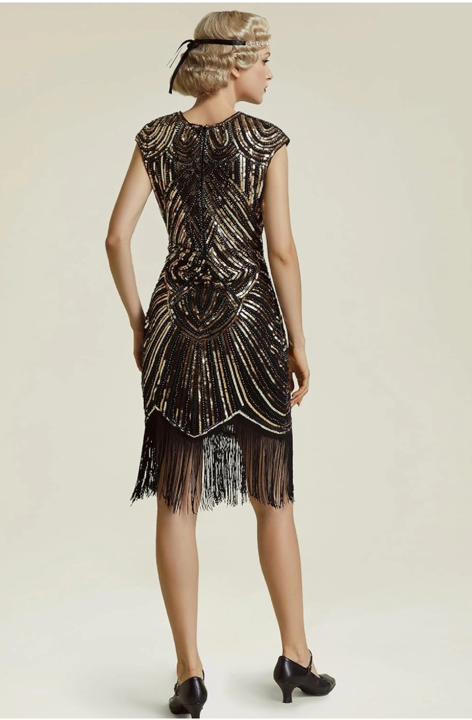 Babeyond-Flapper Dress - Black and Gold, Size Unknown