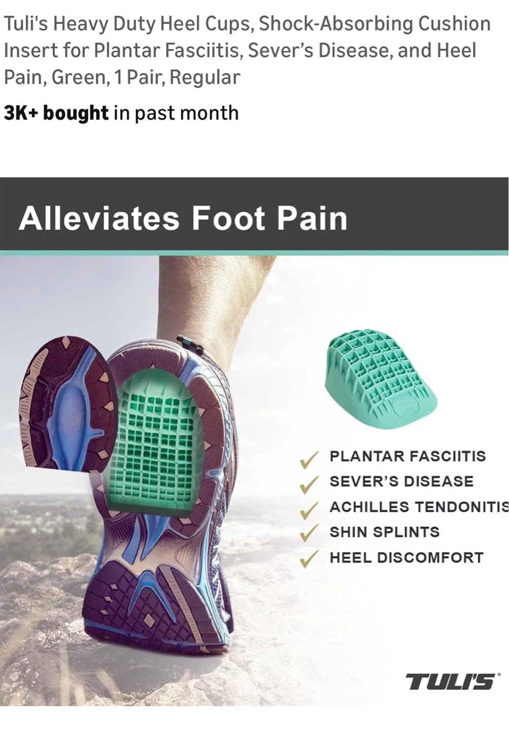 Duty Heel Cups, Shock-Absorbing Cushion Insert for Plantar Fasciitis, Achilles tendon, Adolescent feet, shins.