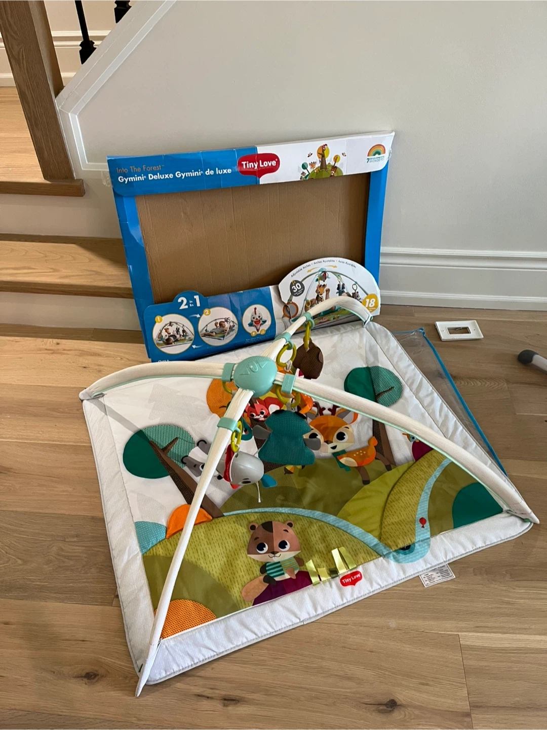 Selling a Tiny Love Into the Forest Gymini Deluxe play mat! It's in great condition and comes with the original box. Your little one will love the engaging toys and colourful design. Originally priced at $79.99.